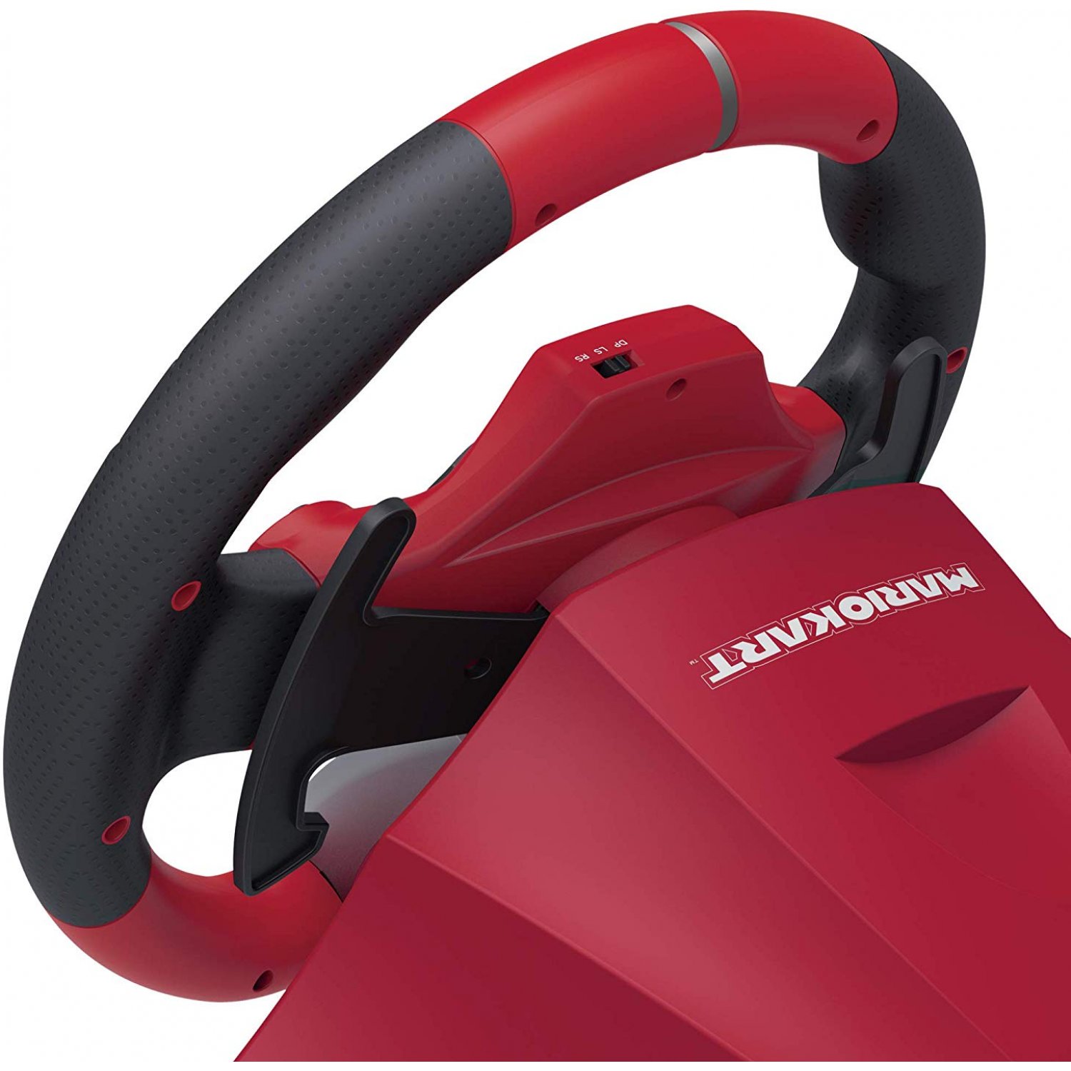 L’accessoiriste bien connu HORI, à l’origine de manettes déjà réputées sur Nintendo Switch, s’essaye maintenant à la création d’un volant aux couleurs de Mario Kart. Celui-ci, nommé sobrement « Mario Kart 8 Racing Wheel » (volant de course), sera disponible en deux versions : une classique destinée avant tout aux enfants, ainsi qu’une DX plus coûteuse mais plus complète et d’aspect un peu plus « pro« . Ce nouvel accessoire fonctionne aussi bien sur Nintendo Switch que sur votre PC grâce à la connectique USB. Bonne nouvelle, puisque la Nintendo Switch Lite n’est pas en reste ; malgré l’impossibilité de poser la machine sur une table, un accessoire supplémentaire est intégré pour brancher le volant sur la console. Il ne vous reste plus qu’à trouver comment faire pour jouer.