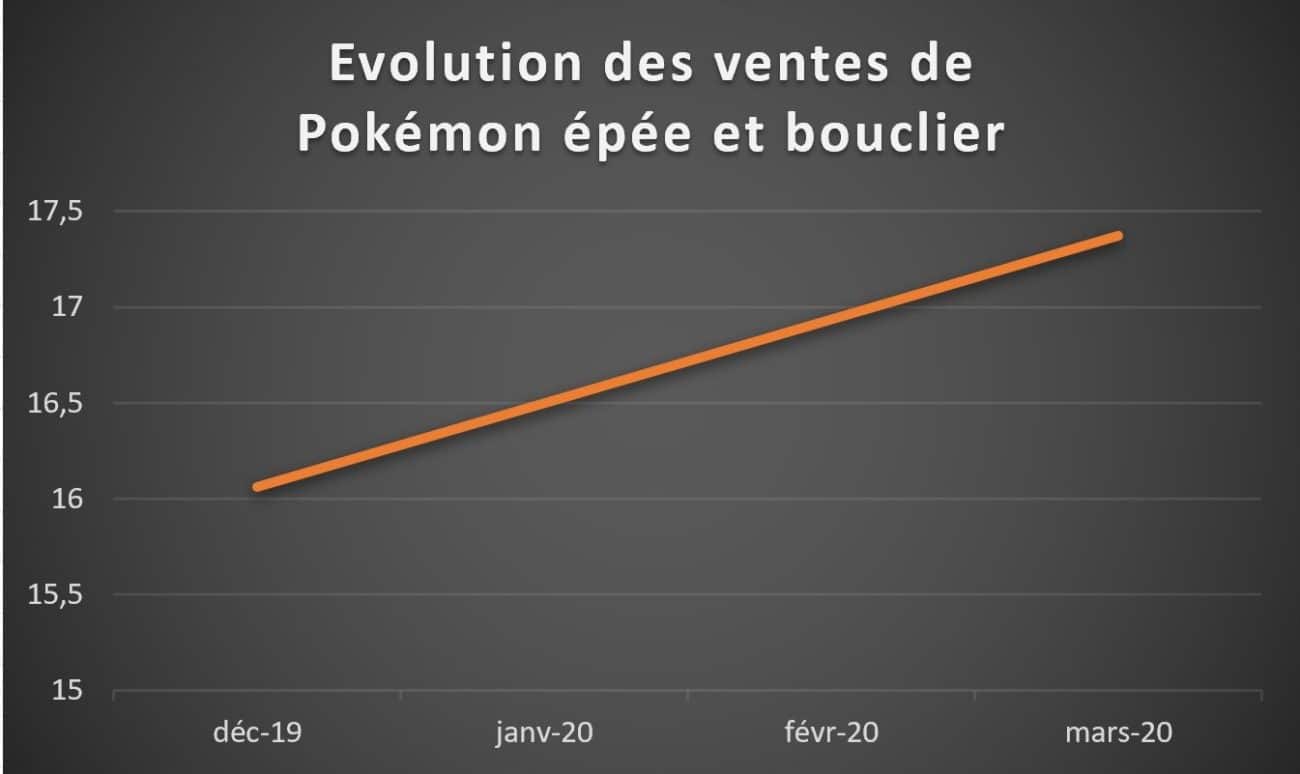 - Le jeu le plus vendu sur l’année fiscale 2019-2020 est bien entendu Pokémon Épée et Bouclier. Sorti en novembre 2019, ce dernier a pu profiter des fêtes de Noël pour dépasser les 17 millions d’exemplaires, faisant de lui le Pokémon le plus vendu depuis Pokémon Diamant et Perle sur DS.