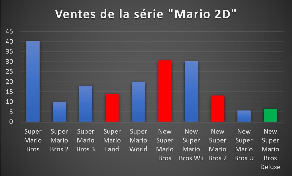 - Pour finir ce top 10 des ventes de la Nintendo Switch, on retrouve New Super Mario Bros U Deluxe, seul titre en deçà des dix millions de ventes avec 6,6 millions d’exemplaires ayant trouvé preneur.