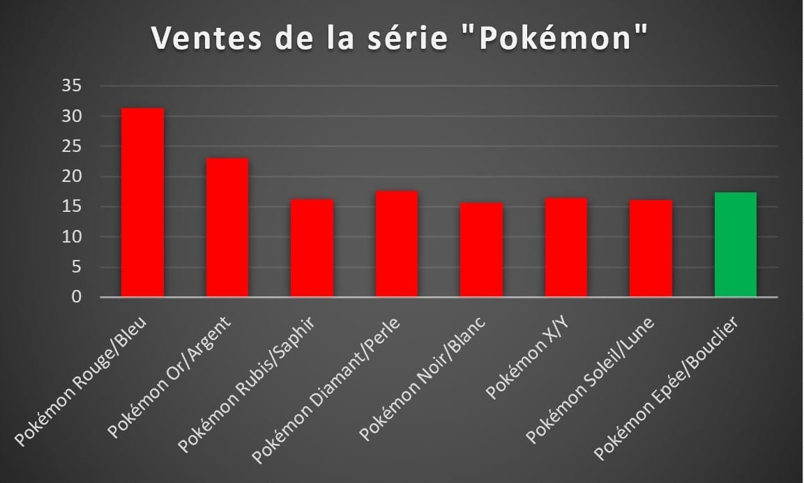 - Le jeu le plus vendu sur l’année fiscale 2019-2020 est bien entendu Pokémon Épée et Bouclier. Sorti en novembre 2019, ce dernier a pu profiter des fêtes de Noël pour dépasser les 17 millions d’exemplaires, faisant de lui le Pokémon le plus vendu depuis Pokémon Diamant et Perle sur DS.