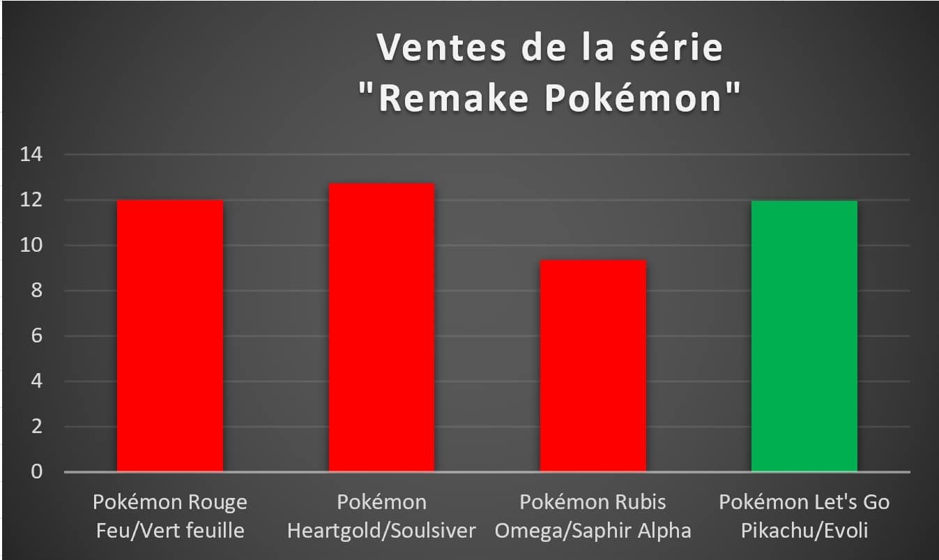 - Un Pokémon peut en cacher un autre, puisque les remakes de la première génération, Pokémon Let’s Go Pikachu et Évoli, restent stables en ne vendant « que » 210 000 exemplaires supplémentaires lors du dernier trimestre. Les jeux s’inspirant de Pokémon Go devraient dépasser le cap des 12 millions d’exemplaires sans problème.