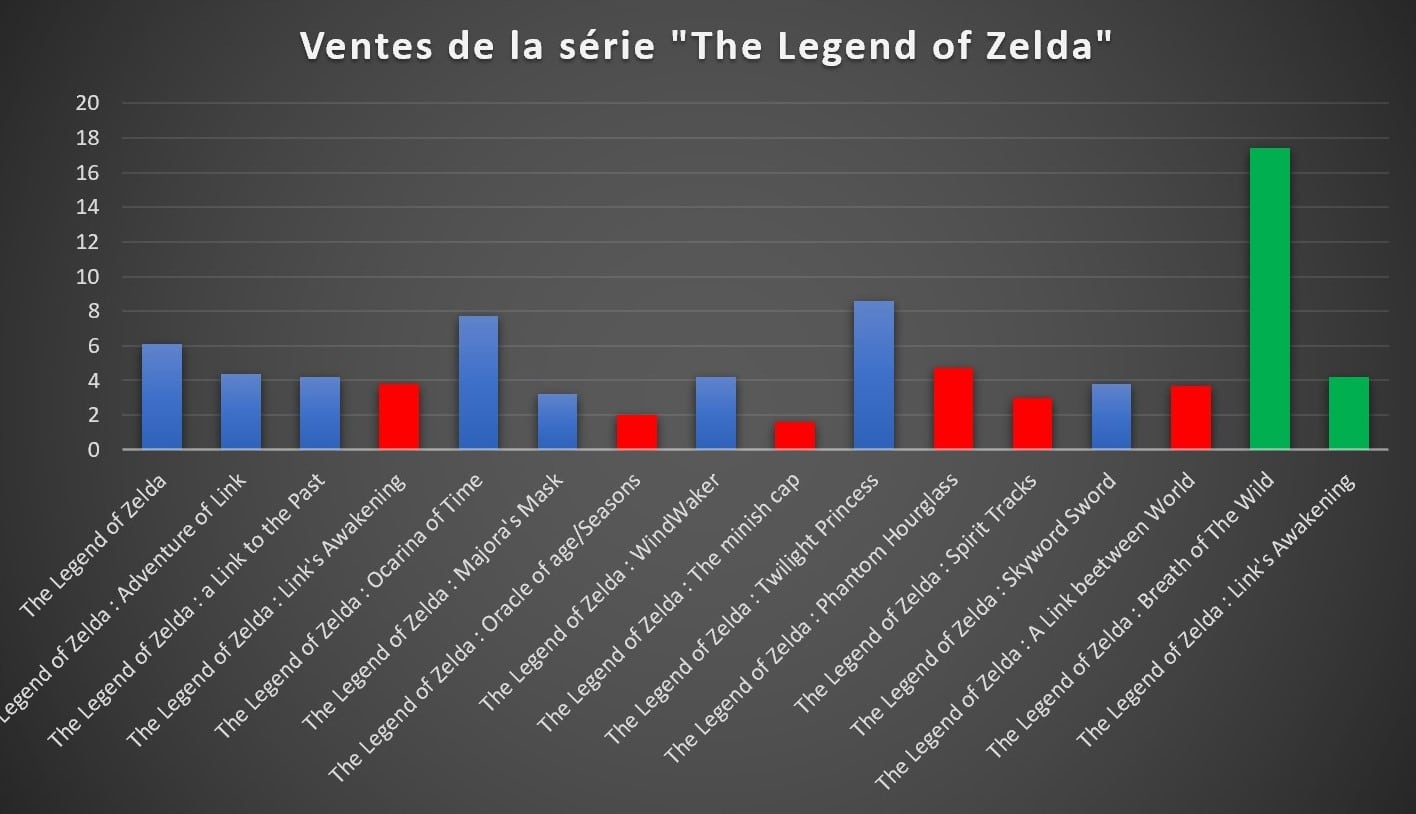 - Bouleversement notable dans le top des meilleures ventes de la Nintendo Switch : The Legend of Zelda: Breath of the Wild dépasse les ventes totales de Super Mario Odyssey. C’est la première fois qu’un Zelda d’une console dépasse les ventes d’un Mario de la même plateforme. Outre cela, c’est encore un million de Breath of the Wild qui ont trouvé preneur lors de cette dernière période.
