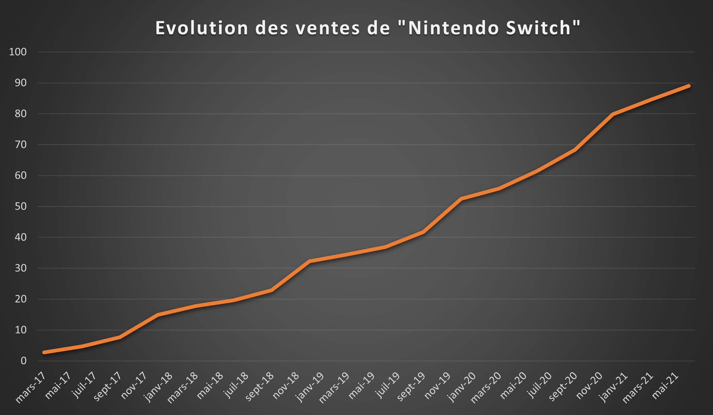Avec 4.45 millions de Switch vendues ce trimestre, Nintendo s’approche de la barre des 90 millions de machines (89.04 millions exactement) écoulées depuis sa sortie en mars 2017. D’ici la fin de l’année et avec l’appui du modèle OLED, la console hybride pourrait dépasser les ventes de la Wii dont le total s’élève à 101 millions. Il restera ensuite la (le ?) Gameboy puis la Nintendo DS pour devenir la console la plus vendue de tous les temps (la DS et la PS2 étant dans un mouchoir de poche).