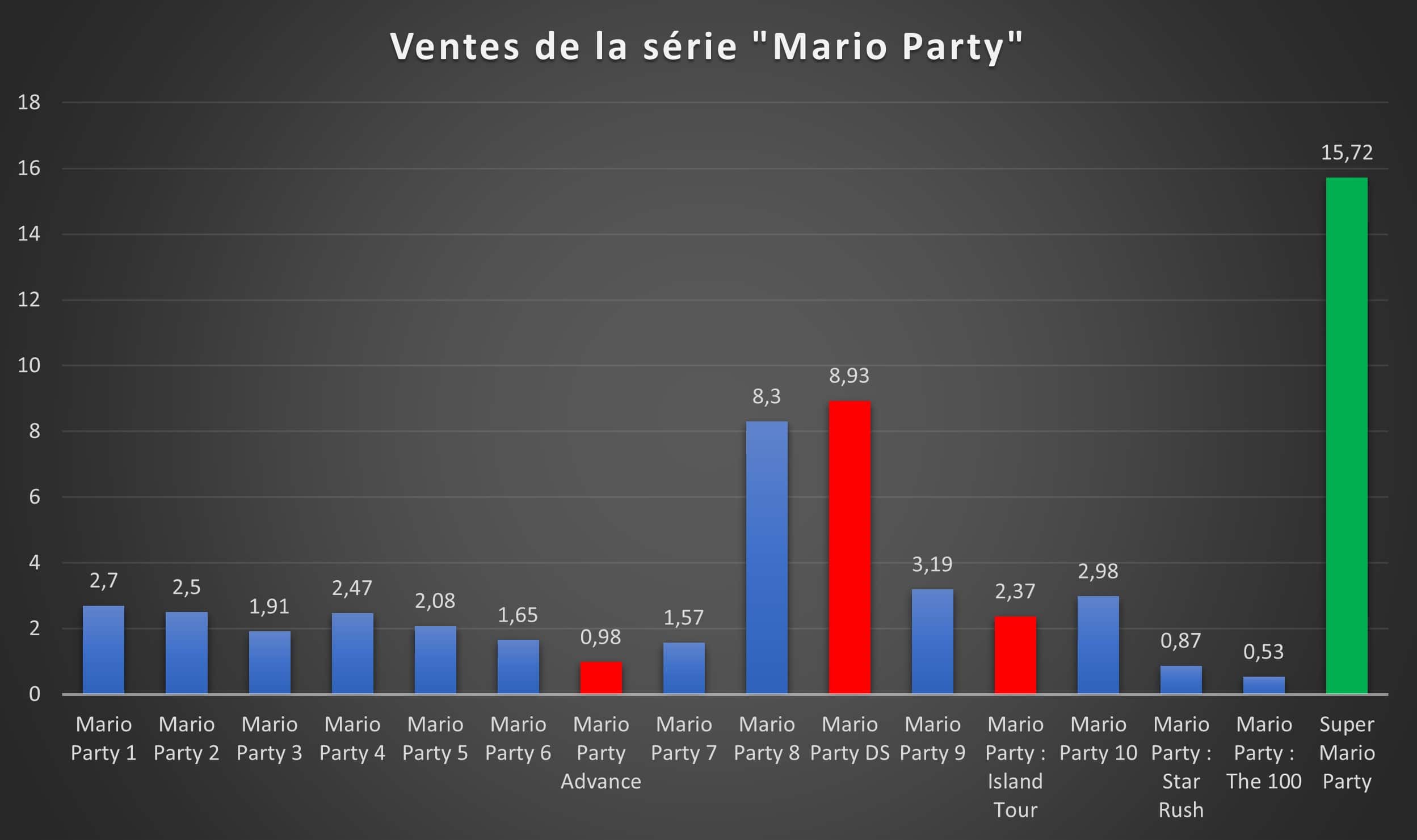 - Les autres sorties, Miitopia et Mario Golf: Super Rush réalisent respectivement 1.04 millions et 2.07 millions de ventes. Notons que le jeu de golf de la Nintendo Switch ne bénéficie que d’une seule semaine de commercialisation ;