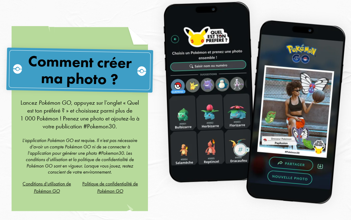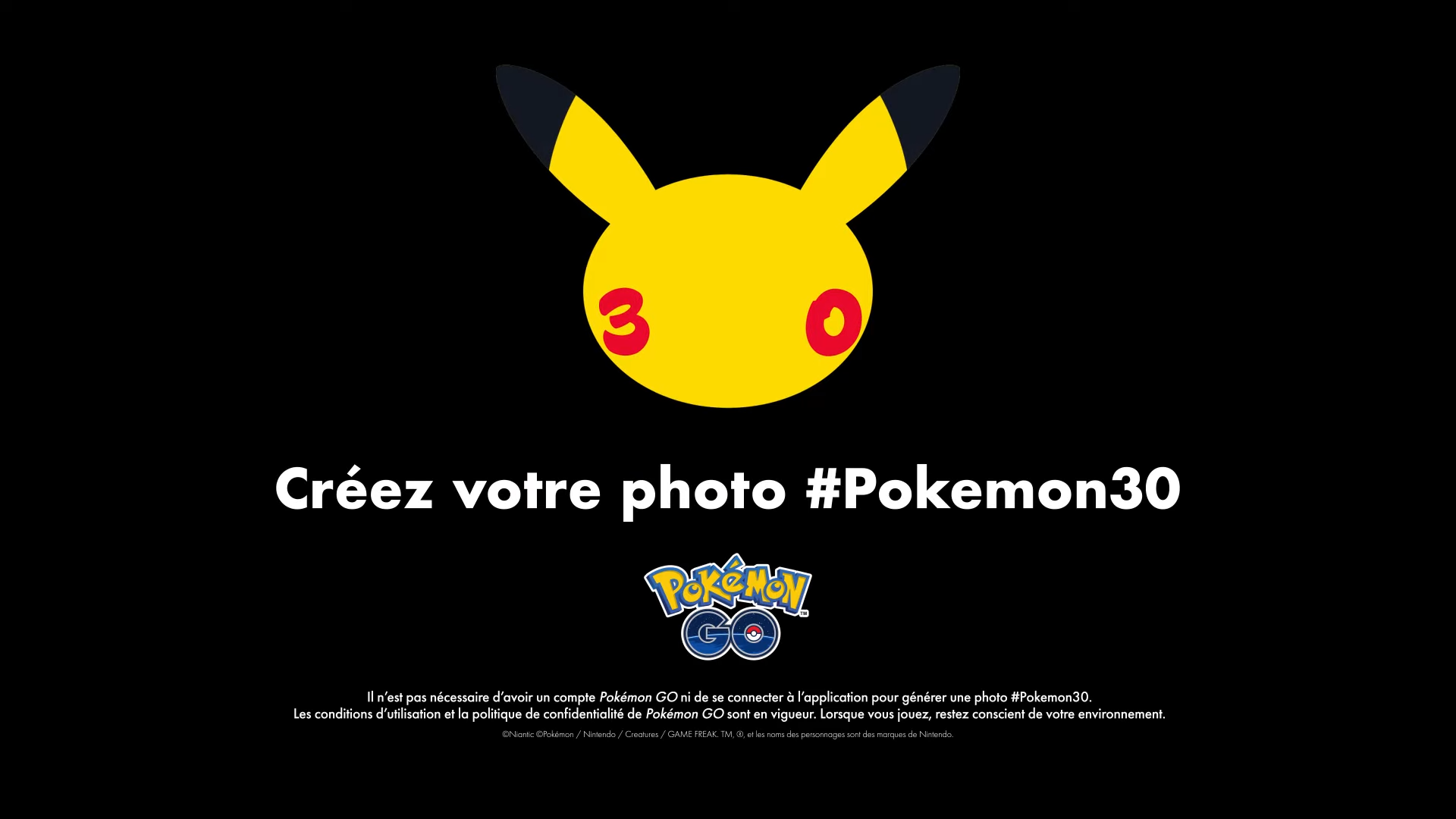 Bien que l’application soit requise, il n’est ni obligatoire de posséder un compte Pokémon GO, ni de se connecter pour générer une photo #Pokemon30. A noter que l’on célèbre également les10 ans de l’application cette année !