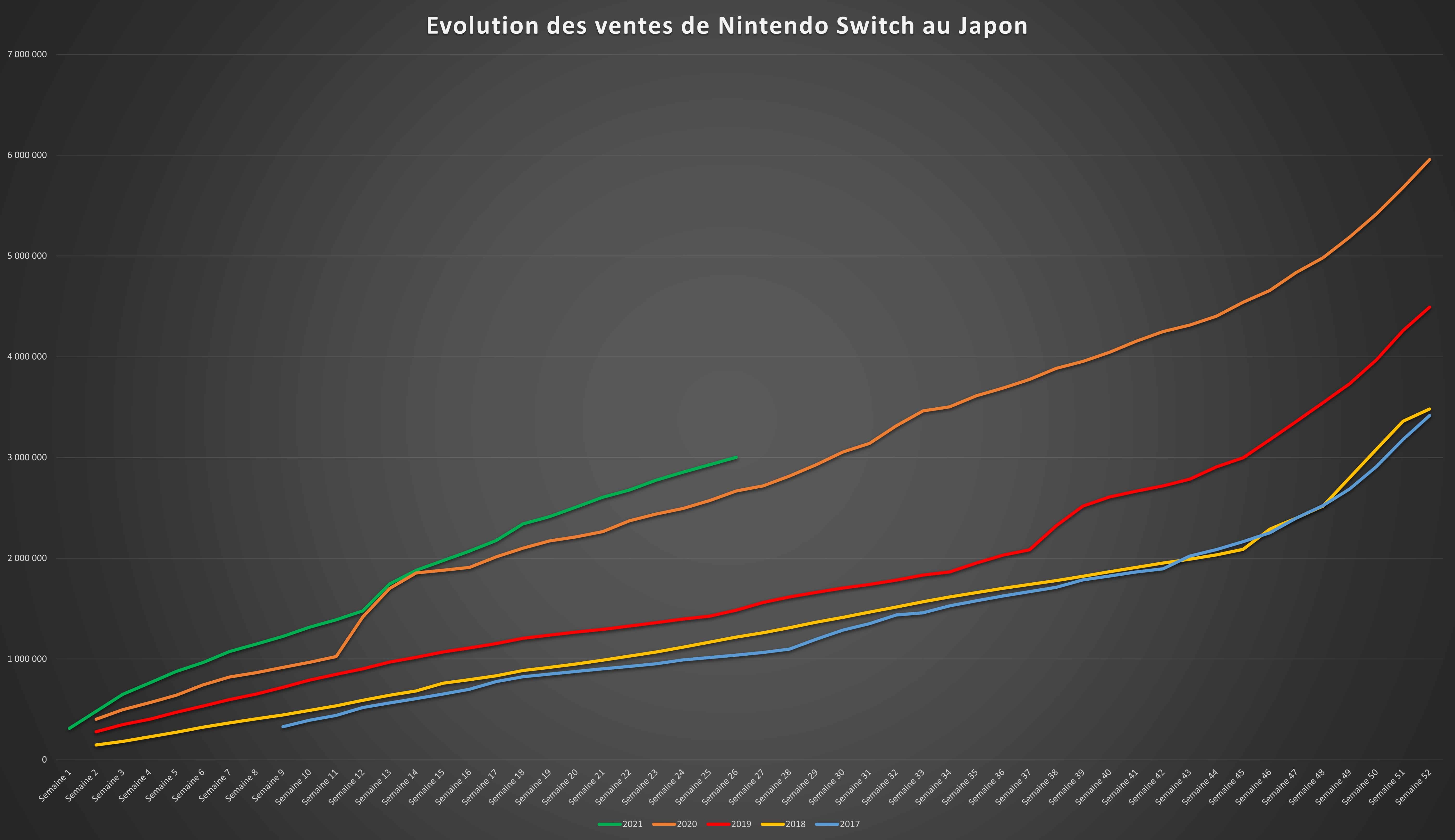 Du côté des ventes de consoles, les ventes de la Switch continuent de diminuer de semaine en semaine atteignant les 70 000 ventes sur cette période. Il sera intéressant de voir si les sorties de Monster Hunter Stories 2: Wings of Ruin et de The Legend of Zelda: Skyword Sword HD couplées à un bon réassort, permettront de faire remonter les ventes de la machine hybride.