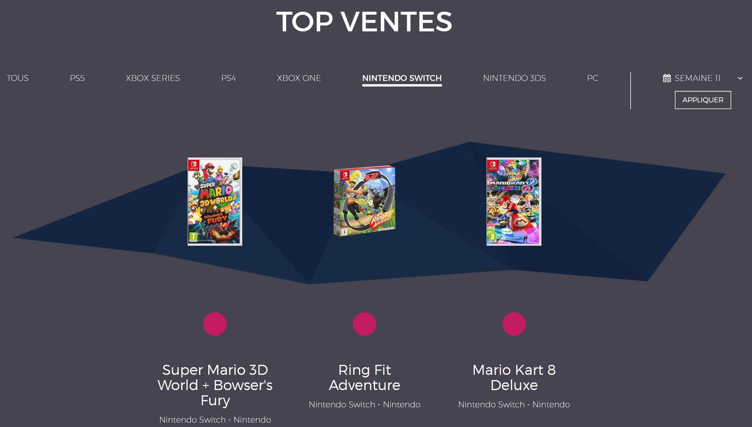 Top 3 des ventes Nintendo Switch