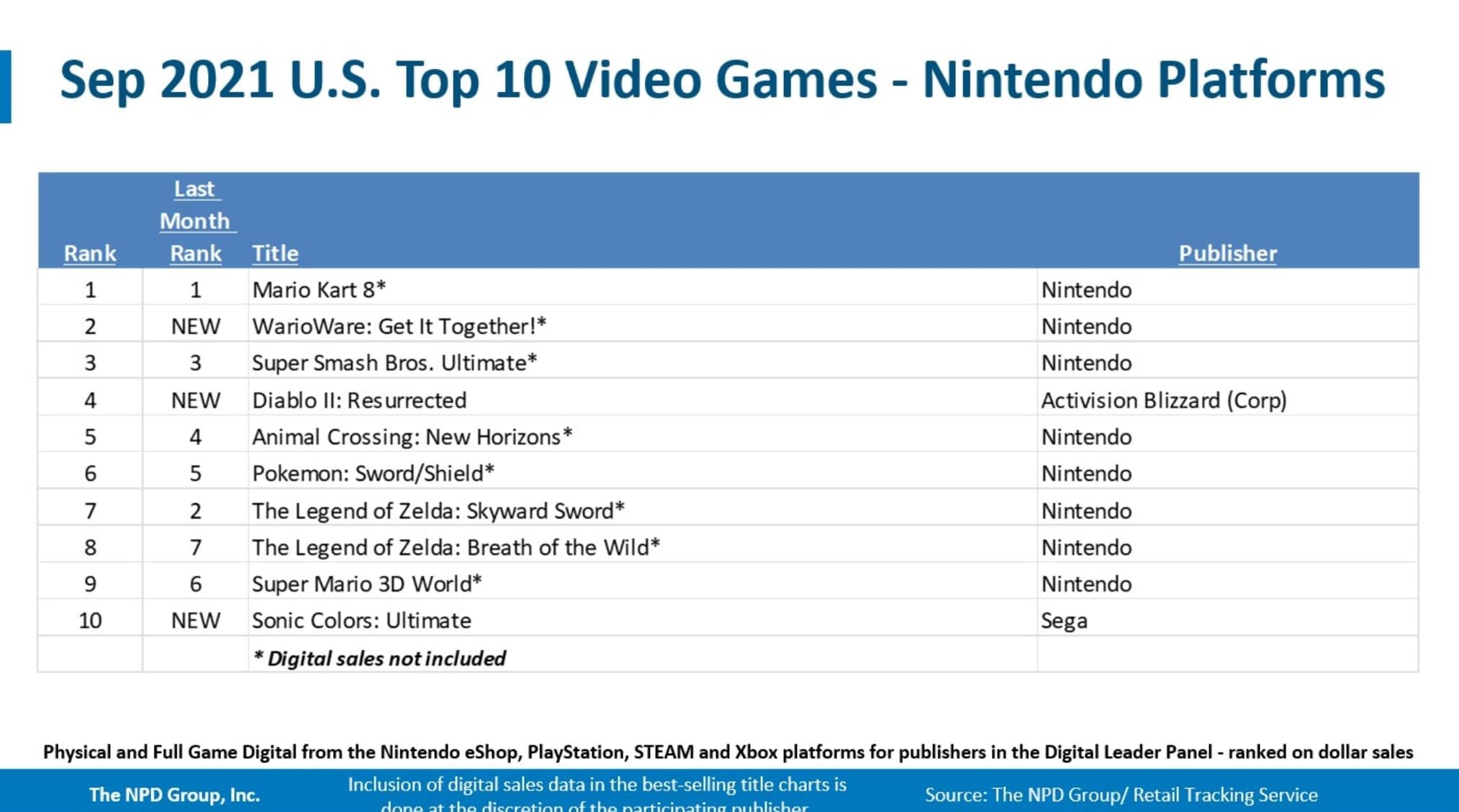 Il est temps de faire le mois sur le top des ventes de jeux et de consoles aux États-Unis pour le mois de septembre. Outre la grande quantité de nouvelles sorties, avec FIFA 22, NBA 2K22, Tales of Arise, Diablo II: Resurrected, ou encore WarioWare: Get It Together! pour citer un jeu Nintendo Switch, c’est au niveau des ventes de consoles que l’évènement marquant se produit. Ces données proviennent du NPD Group, relayées sur Twitter par Mat Piscatella.