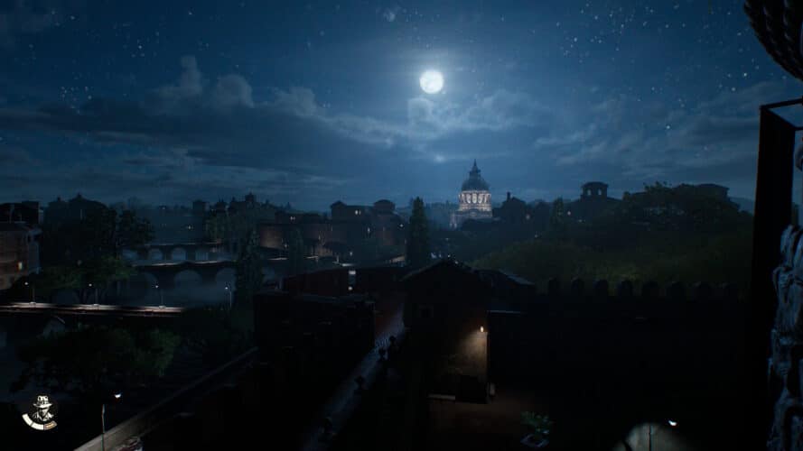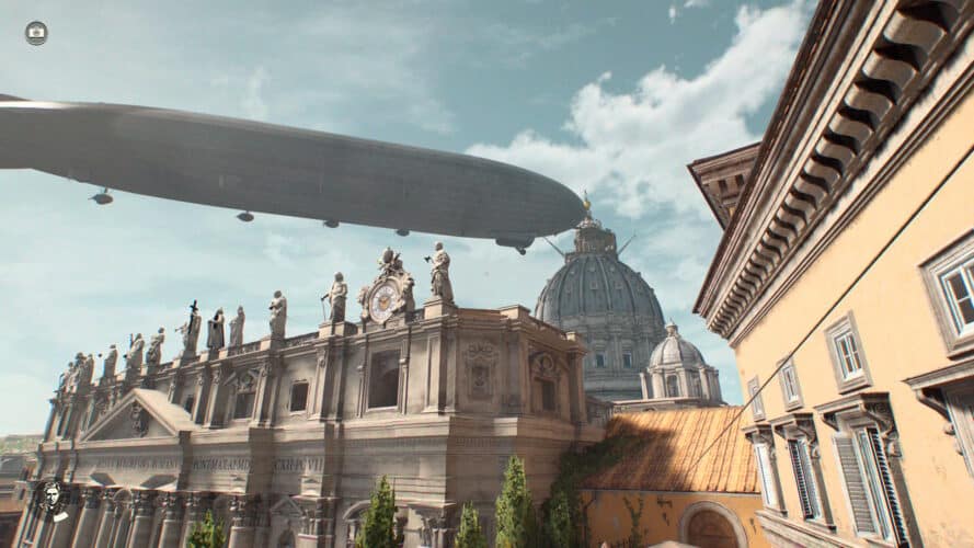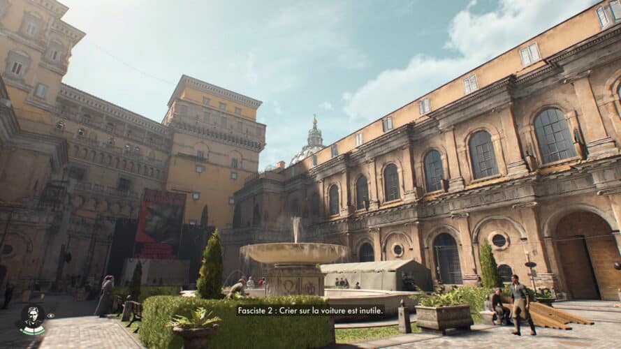 Certains détails font plaisir, comme des textes sur des affiches aux murs qui ne souffrent pas de textures dégradées rendant les écritures illisibles, et des reflets sur les murs marbrés du Vatican qui se défendent très très bien. En extérieur encore, tout reste plus compliqué. Dans notre preview, on a pu découvrir le Vatican, un lieu attrayant à traverser mais qui n'est pas sans concession. Les arbres sont en deçà, et les PNJ au loin voient leur framerate lourdement baisser, ce qui donne un côté mi-triste mi-comique quand on regarde les passants d'un point de vue en hauteur.
