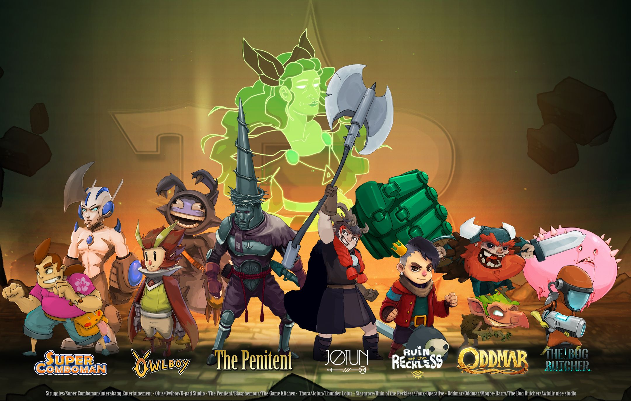 Dans Bounty Battle, divers représentants des licences iconiques du jeu indépendant rejoindront le champ de bataille pour montrer qui est le meilleur. Dead Cells, SteamWorld Dig, Owlboy, Axiom Verge ou encore Guacamelee! ne sont qu’un échantillon des futurs participants : au total, ce sont 30 héros qui intégreront le casting, le tout dans 16 stages prenant place dans les différents univers des plus de 20 licences invitées. Plusieurs modes de jeux seront évidemment proposés dans Bounty Battle : un mode tournoi, un mode co-op et versus (jusqu’à 4 joueurs) ainsi qu’une salle d’entraînement et des tutoriels pour se familiariser avec les combattants du jeu. Chaque personnage aura ses propres capacités : il sera par exemple possible d’invoquer un acolyte pour aider à vaincre le ou les adversaires. Enfin, les stages pourront être légèrement modifiés en changeant les couleurs, donnant une petite touche personnelle à chacun.