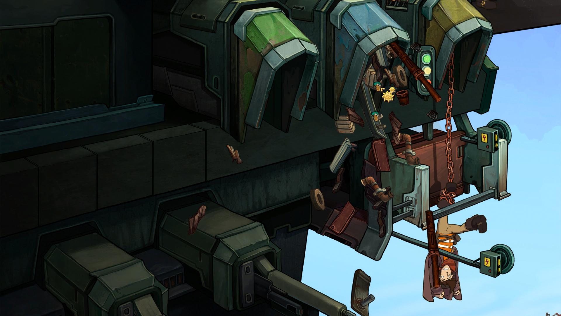 Le protagoniste nommé Rufus, un malandrin de basse extraction, mène une vie mortellement ennuyeuse dans cette décharge, mais rêve de vivre dans une ville flottante au-dessus des nuages (coucou Alita ?). La chance lui sourit un beau jour lorsqu’une jeune femme nommée Goal tombe du ciel. Avec ses énigmes, ses personnages étranges et sa direction artistique digne d’une bande-dessinée et sa note Metacritic plutôt flatteuse, ce point & click pourrait sans doute ravir plus d’un mordu du genre.