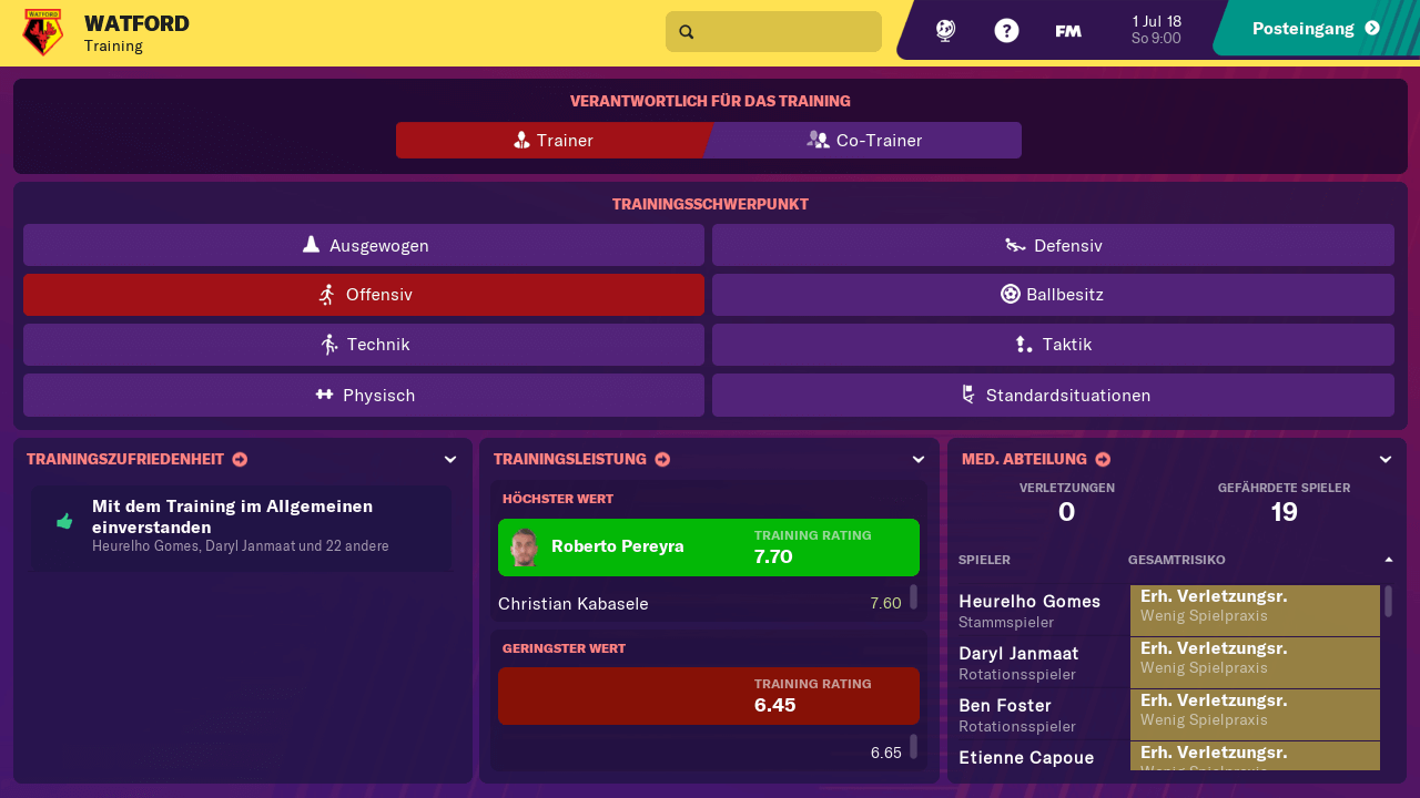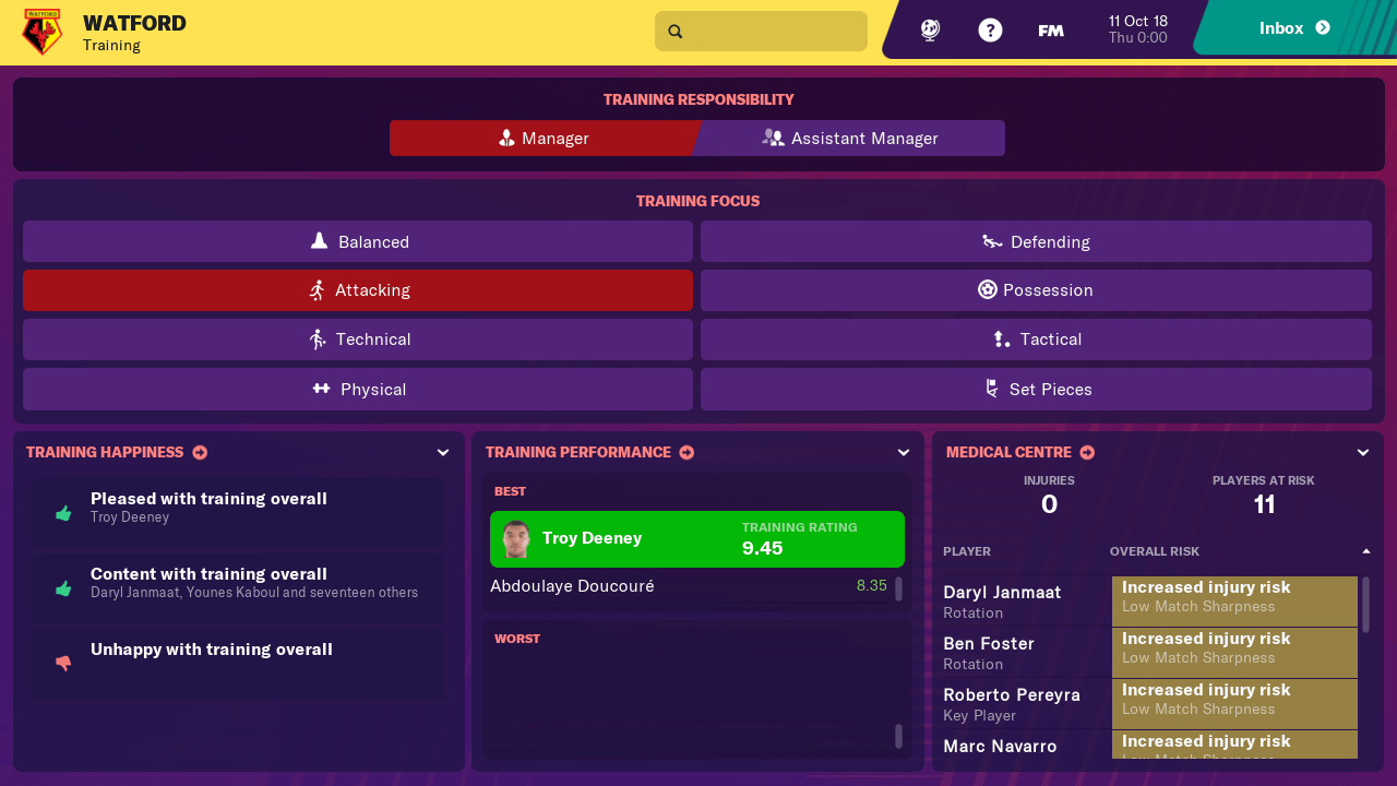 - Entraînement revu et corrigé : Le nouveau module d’entraînement a été revu et simplifié, tout en offrant une représentation réaliste de la manière dont les clubs forment leurs jeunes joueurs, et préparent l’équipe principale spécifiquement pour chaque match et, plus généralement, pour la saison à venir.