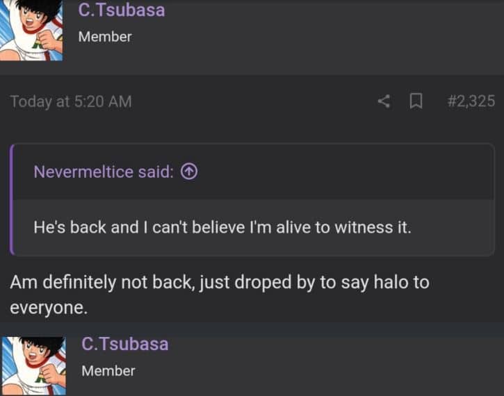 Je ne suis certainement pas de retour, je viens juste de dire halo à tout le monde.