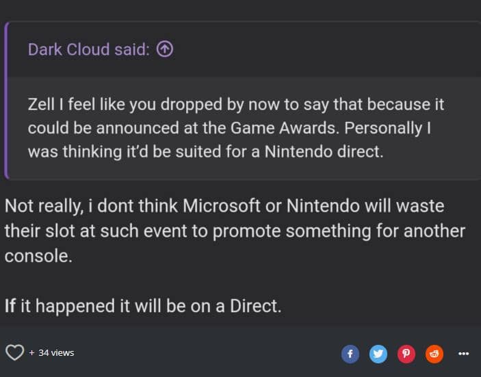 Je ne pense pas que Microsoft ou Nintendo gaspilleront leur place lors d’un tel événement [ndlr: les Game Awards] pour promouvoir quelque chose pour une autre console. Si cela se produit, ce sera lors d’un Direct.