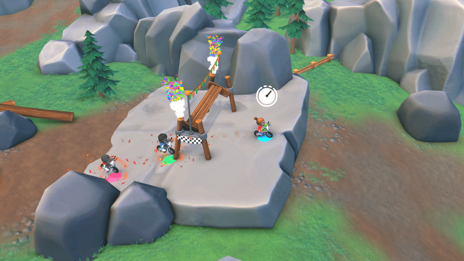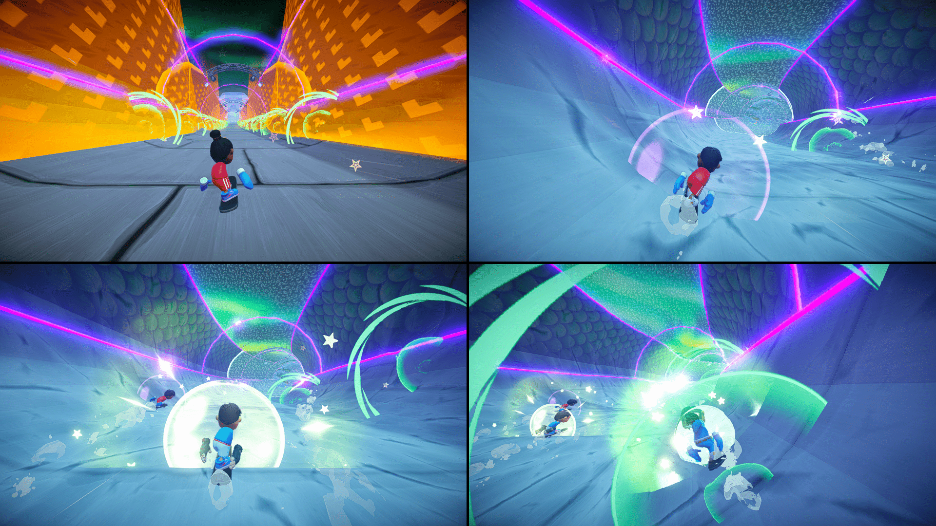 Le jeu intègre un mode multijoueur local pour jusqu’à quatre personnes simultanément sur le même écran. Un système de tickets récompense les performances des joueuses et joueurs, lesquels peuvent ensuite être dépensés dans une boutique in-game pour débloquer des tenues, équipements et effets visuels destinés à personnaliser son personnage.