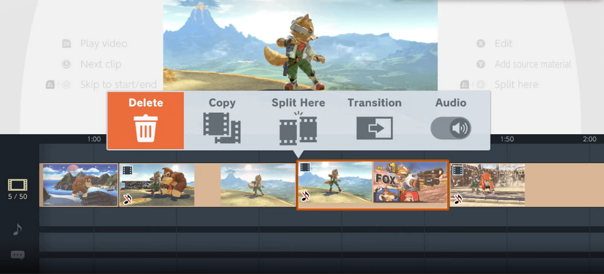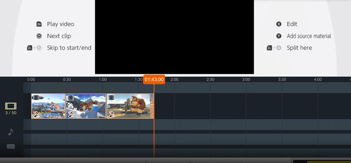 Le jeu vous permettra de couper, monter et ajouter des transitions sur les différentes vidéos que vous avez prises du jeu, afin que vous puissiez faire des compilations de vos moments les plus épiques ou raconter des petites histoires. Enfin, ça c’est ce que Nintendo veut : la vérité, c’est que tout le monde va s’en servir pour faire des memes.