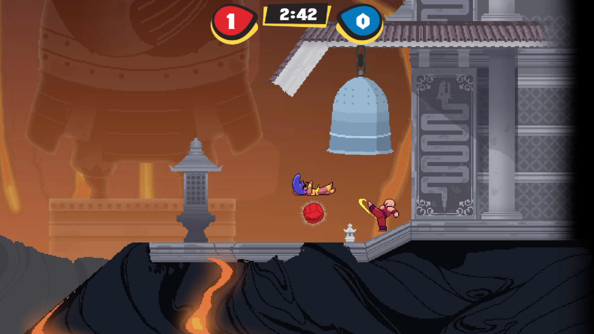Le jeu utilise des contrôles minimalistes afin de créer une expérience à la fois accessible et compétitive. Les matchs proposent des confrontations rapides mais intenses, promettant une lutte acharnée dans laquelle les joueurs alternent frappes offensives et positions défensives en un instant. Qui dit combat et football dit forcément multijoueur : KungFu Kickball disposera d’un mode local et en ligne en 1v1 et en deux équipes de deux joueurs, en 2v2 donc. Il sera possible de jouer contre ses amis, tout comme des inconnus qui ont soif de vous écraser.