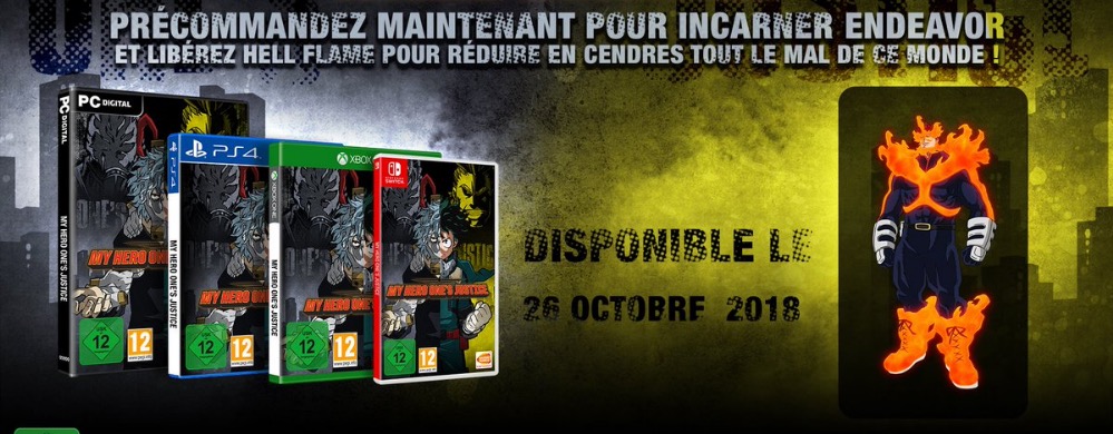 On apprend également que les précommandes sont d’ors et déjà ouvertes et qu’un personnage bonus vous sera attribué. Il s’agit du sulfureux Endeavor dont vous pourrez ainsi déchaîner les flammes meurtrières en combat. En revanche, rien n’est indiqué quant à l’obtention du personnage en dehors de ce bonus de précommande. Deux nouveaux personnages sont également présentés dans cette nouvelle bande-annonce en la présence de Gran Torino et Muscular.