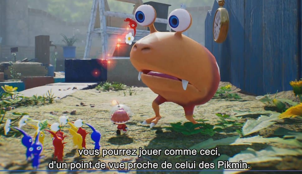Explications : les trois précédents épisodes de la série étaient caractérisés par un point de vue à la troisième personne aérien et relativement éloigné. Ceci pour permettre une vision large de ce qui se passe à l’écran, notamment pour vous assurer que vos Pikmin vous suivent. Dans Pikmin 4, il sera possible d’adopter un point de vue beaucoup plus proche de vos petits protégés ce qui devrait grandement influer sur la perception des environnements du jeu !
