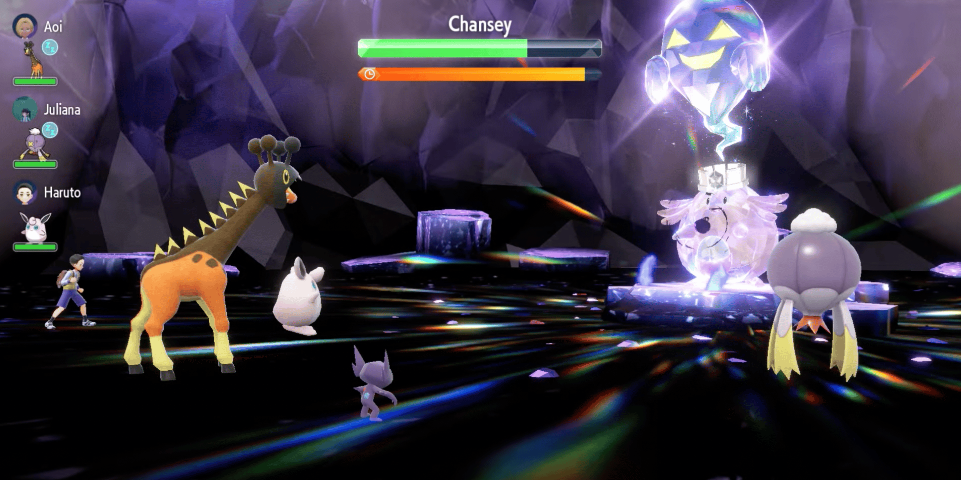 Tout comme les Raids Dynamax d’Épée & Bouclier, il sera possible d’affronter des Pokémon capables de se téracristalliser à l’aide de trois autres joueurs. Ces raids seront souvent l’occasion de rencontrer un Pokémon au type téracristal rare comme un Leveinard capable de passer au type Spectre.