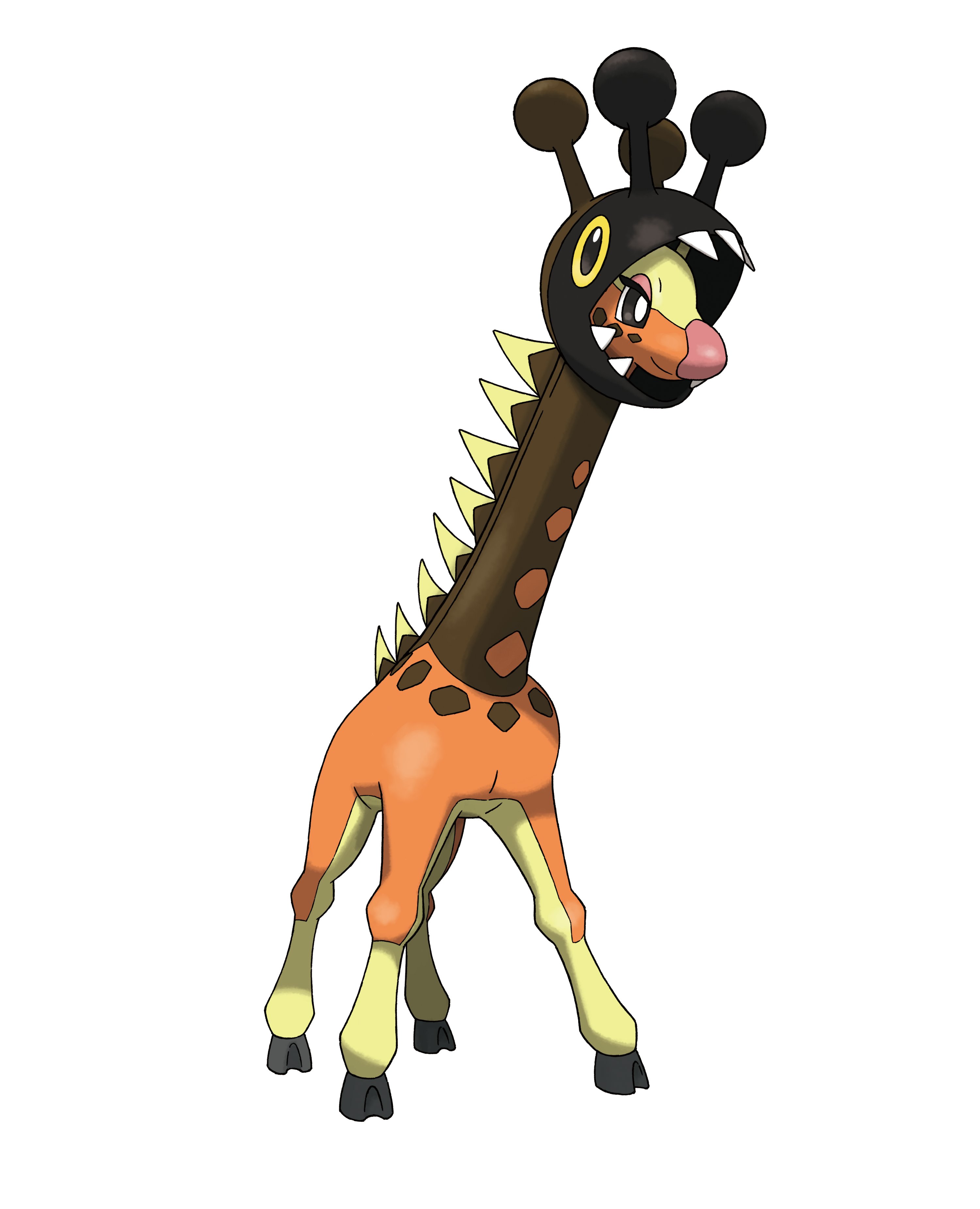 Apparu dans Pokémon Or & Argent, Girafarig a droit à sa petite minute de gloire avec l’arrivée d’une évolution rien que pour lui ! Baptisé Farigiraf (prenez un instant pour vous remettre), ce nouveau Pokémon conservera son double type Normal-Psy et pourra avoir un Talent parmi deux inédits : Ruminant, qui permet à votre Pokémon de consommer une Baie une deuxième fois après l’avoir mangée au tour précédent, et Armure Caudale, qui empêche l’adversaire d’utiliser des capacités prioritaires.