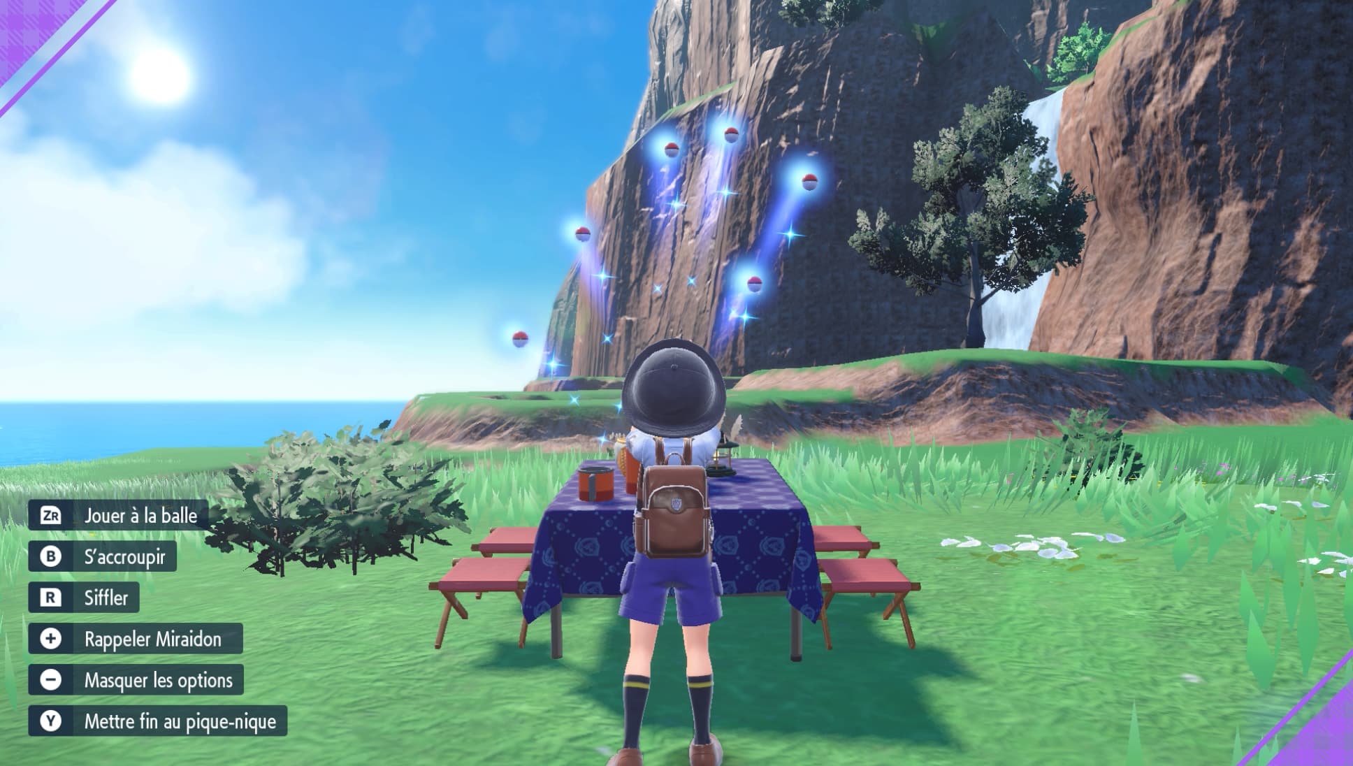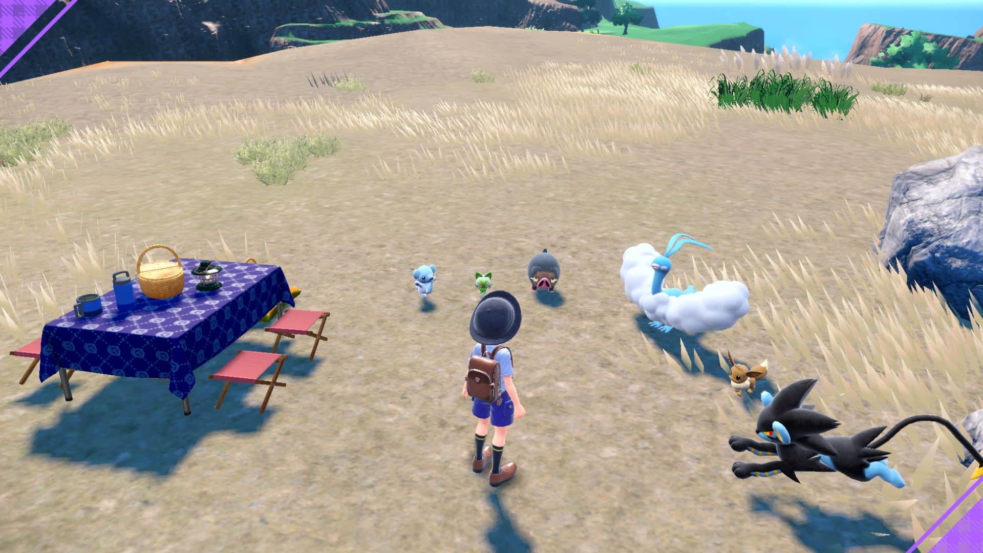 Voyager dans Paldea ne sera pas de tout repos mais vous pourrez toujours vous reposer et faire un petit pique-nique avec vos Pokémon adorés. Ces pauses bien méritées seront l’occasion de jouer avec vos monstres de poches, leur donner un brin de toilettes et même de trouver des oeufs. Les plus affamés d’entre vous pourront également prendre part à un mini-jeu consistant à préparer un sandwich avec les ingrédients que vous aurez trouvés pendant votre voyage. Un sandwich bien préparé ravira vos Pokémon qui pourront bénéficier de quelques bonus.