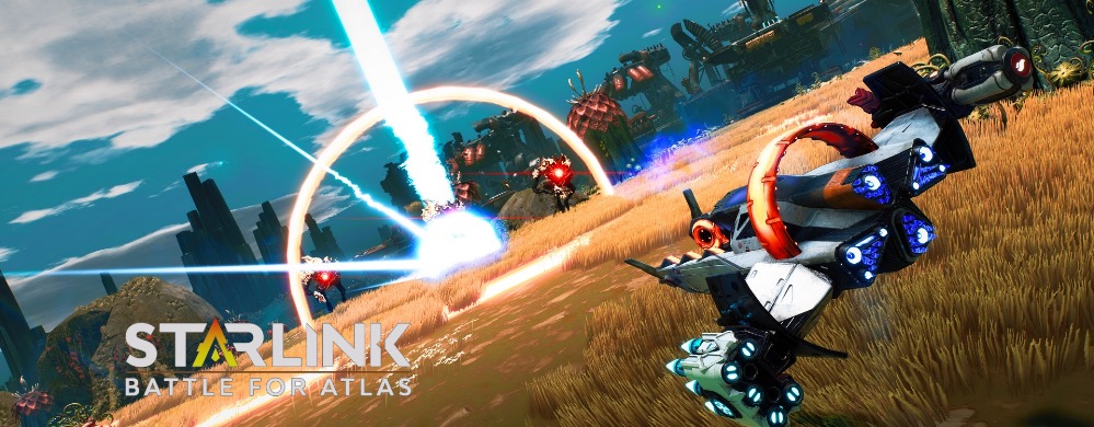 Après cette étape passée, entrons dans le vif du sujet : les batailles ! Starlink : Battle for Atlas propose un gigantesque monde ouvert évoluant en temps réel qui se démarque par la pertinence de ses interactions. Chaque bataille débute dans l’espace et c’est à vous de rejoindre la planète où se déroule votre mission en traversant son atmosphère. Petite particularité très appréciable : la surface de la planète évolue à tout instant, même quand vous n’y avez pas encore atterri. Ainsi, les monstres présents continueront de se mouvoir en votre absence, ce qui amène une dimension stratégique sui sera sans doute très appréciable en jeu.