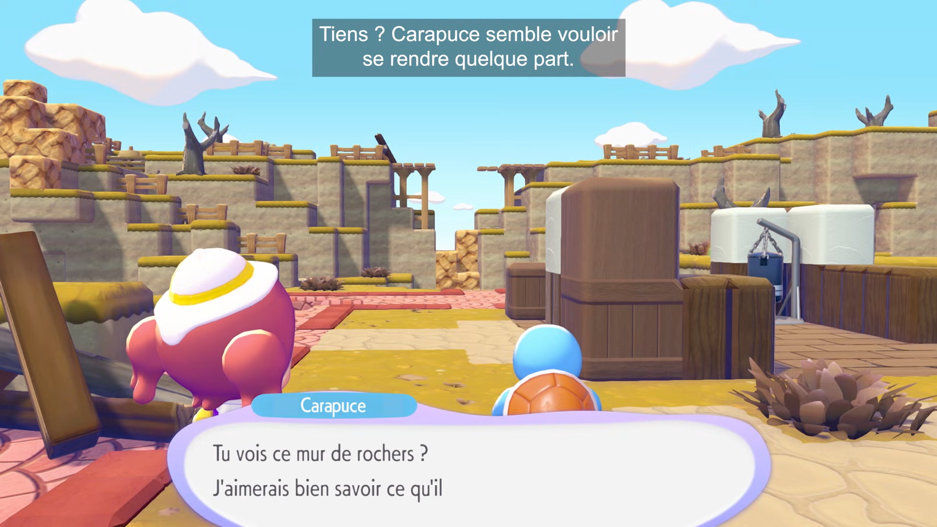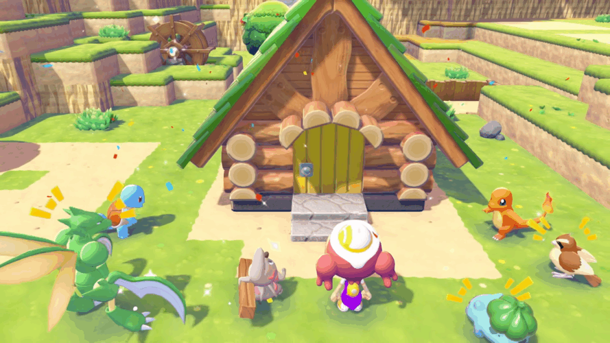 Dès le début, nous découvrons le Professeur Bouldeneu. Il nous demandera de l’accompagner dans sa tâche, celle de redonner vie à un monde déchu. Il faudra donc créer différents habitats, ce qui permettra d’attirer une large gamme de monstres de poche en fonction de l’environnement bâti. Cela va de soi, il faudra utiliser différentes capacités de Pokémon pour entretenir ce monde. Notre personnage pourra donc apprendre les attaques des créatures rencontrées, voire même de copier leur forme pour acquérir des pouvoirs, à l’image de Lokhlass pour la nage et Dracolosse pour le vol. Lorsque les monstres de poche ne nous donnent pas de capacités, ils nous aident eux aussi à donner vie au monde à l’aide de leurs capacités. Les Pokémon de type feu pourront notamment allumer un feu de camp, tandis que les types plantes seront en mesure de fertiliser la terre.