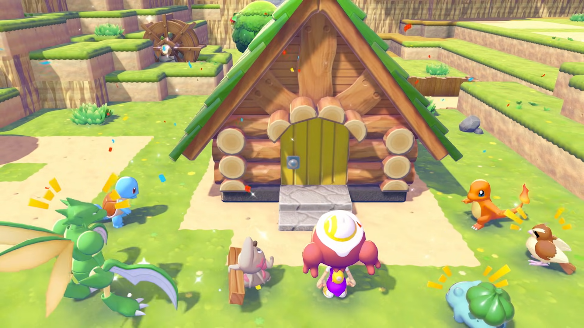 Ces Pokémon pourront également nous formuler des requêtes, il faudra donc réaliser différentes tâches pour les satisfaire, comme leur frayer un chemin pour qu’il puisse aller là où ils le souhaitent. D’autres requêtes, plus importantes, nous obligeront à faire équipe avec d’autres créatures. Pokémon Pokopia nous offre aussi la possibilité de décorer ce monde : meubles, jouets, routes, nulle doute que le jeu sera assez fourni pour proposer un univers original. Des maisons pourront également être construites, mais aussi des structures plus poussés, comme des fontaines. L’intérieur des maisons sera à décorer.