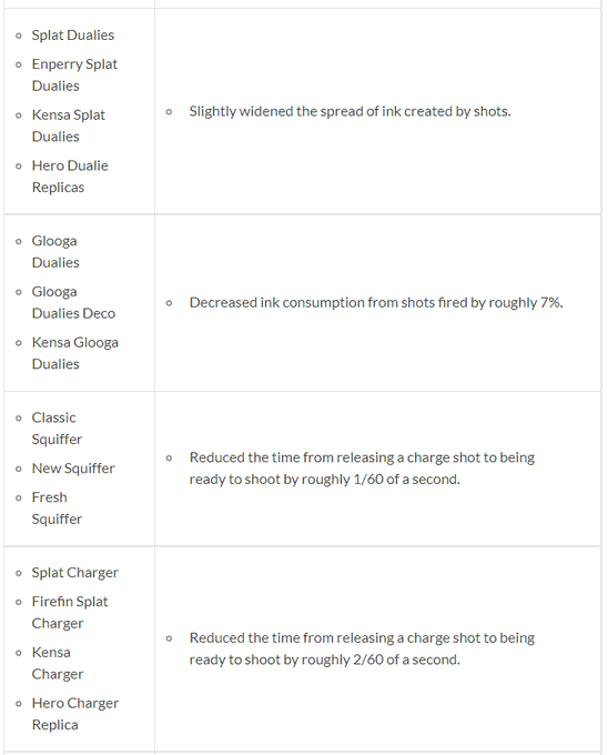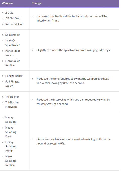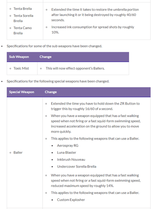On peut notamment observer que les Para-Encre XL ont subi une baisse significative de leurs capacités (temps de régénération du parapluie et consommation d’encre augmentés) tandis que les rouleaux projettent désormais plus d’encre au sol. Le patch-notes complet de cette mise à jour de Splatoon 2 est disponible ci-dessous en anglais, mais si vous préférez notre bon vieux français, sachez que nos confrères de SplatActu.fr ont très généreusement traduit l’ensemble des notes de mise à jour ici.