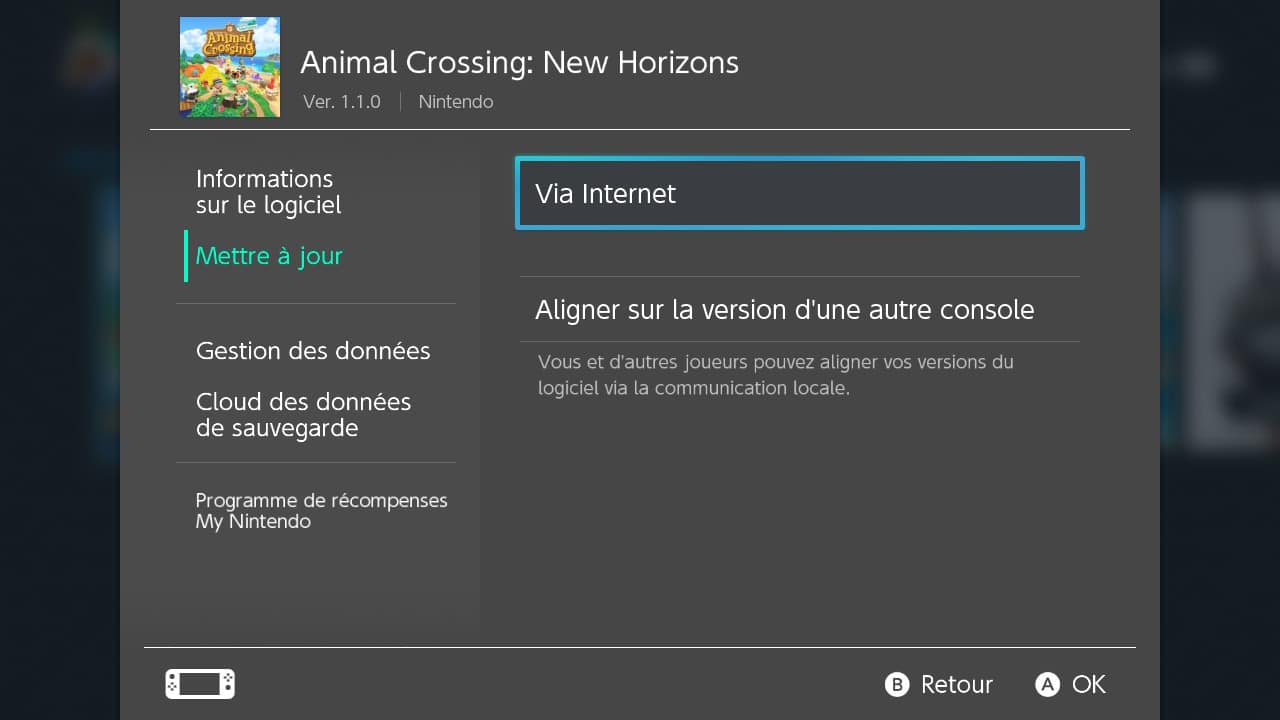 Si la mise à jour n’a pas été téléchargée automatiquement pour votre jeu, voici la marche à suivre :