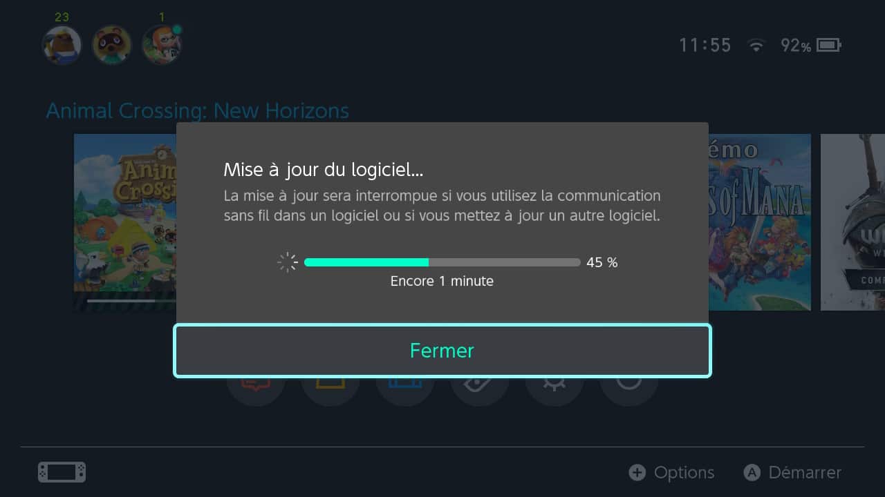 Si une mise à jour est disponible, elle vous sera proposée à ce moment, se téléchargera puis s’installera sur votre console. Plus qu’à en profiter !