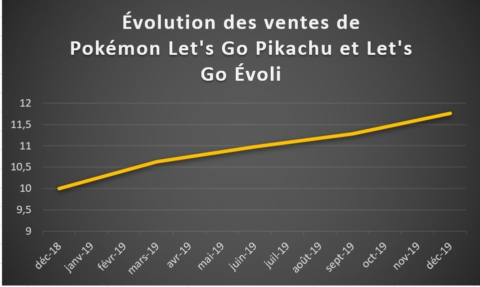 - Un Pokémon peut en cacher un autre, puisque l’on retrouve Pokémon Let’s Go à hauteur de 11 760 000 exemplaires vendus. Les ventes ont considérablement ralenti, sans doute dû à l’arrivée de la nouvelle génération sur le marché. Les ventes se situent globalement dans la moyenne des remakes de Pokémon.