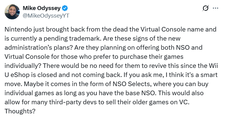 Ces derniers jours, des rumeurs suite à un dépôt de brevet par Nintendo au sujet d’un affichage double écrans. Et pas plus tard qu’aujourd’hui, l’entreprise japonaise a également renouvelé sa marqué déposée « Console virtuelle ». De quoi se donner espoir de voir revenir cette fonctionnalité disparue avec la Wii U ?