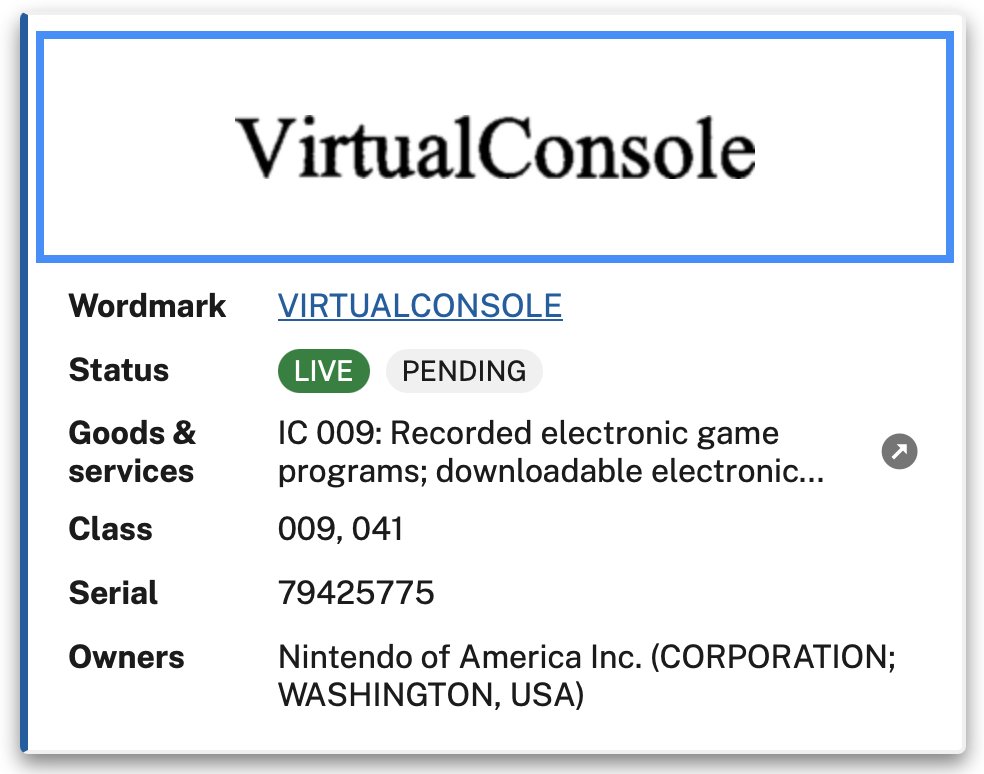 Or c’est justement ce sujet qui nous intéresse ici. Nintendo vient en effet de renouveler la marque « Console virtuelle » auprès du même organisme que pour son fameux nouveau brevet, à savoir le Bureau américain des brevets et marques du commerce. Alors, simple coïncidence ou projet concret ? Comme on en a l’habitude avec Big N, nous n’en aurons probablement jamais la certitude tant que l’entreprise ne communiquera pas à ce sujet, si elle se décide à le faire. Bien que la perspective soit enthousiasmante pour certain·es, gardez bien en tête que ce genre de renouvellement et de dépôt de brevets n’engage Nintendo à rien. Il s’agit de procédures courantes pour les entreprises, afin de garder la mainmise sur leurs marques et filiales et sur leurs technologies maison.