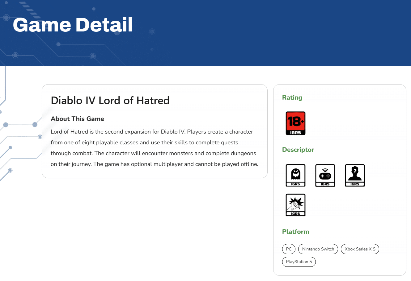 Une classification récente en provenance d’Indonésie suggère que Blizzard pourrait porter son titre phare Diablo IV sur la console hybride de Nintendo, mais pas forcément sur celle que l’on imagine. L’organisme de régulation local, l’Indonesia Game Rating System (IGRS), a répertorié une entrée spécifique concernant le contenu Diablo IV: Lord of Hatred.