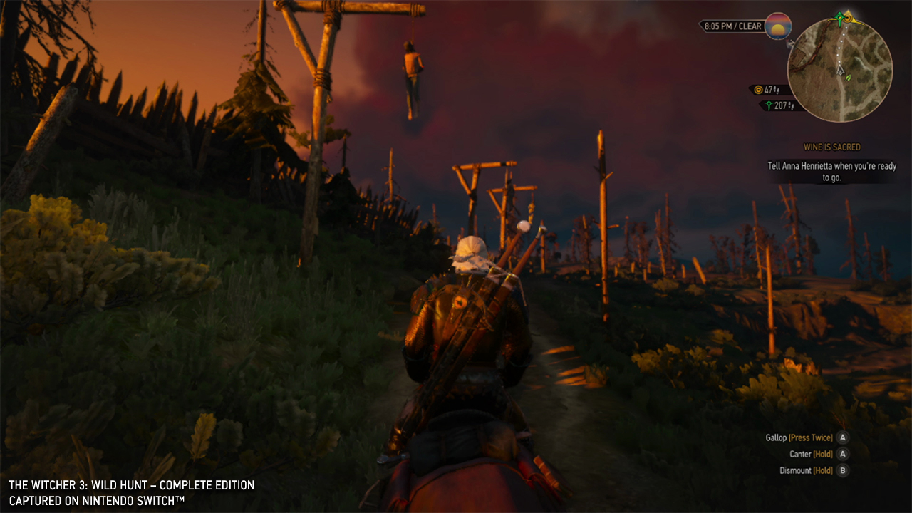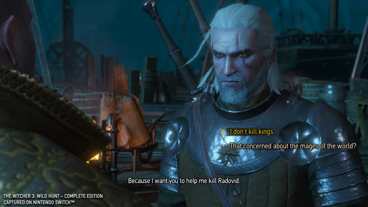 À propos du fait que c'est la même expérience. Lorsque vous jouez à The Witcher 3 sur Switch, vous vous sentez de la même manière que sur les autres plateformes, vous ne sentez donc pas que tout est coupé – et c'est un gameplay fluide. Si vous posez des questions sur un domaine spécifique, j'adore le marché de Novigrad. Vous savez que nous avons le même nombre de PNJ que nous avons sur PS4. Nous avons un peu limité la distance d'affichage, dans certains cas précis, mais oui, c'est le même nombre que celui que nous avions sur PS4.