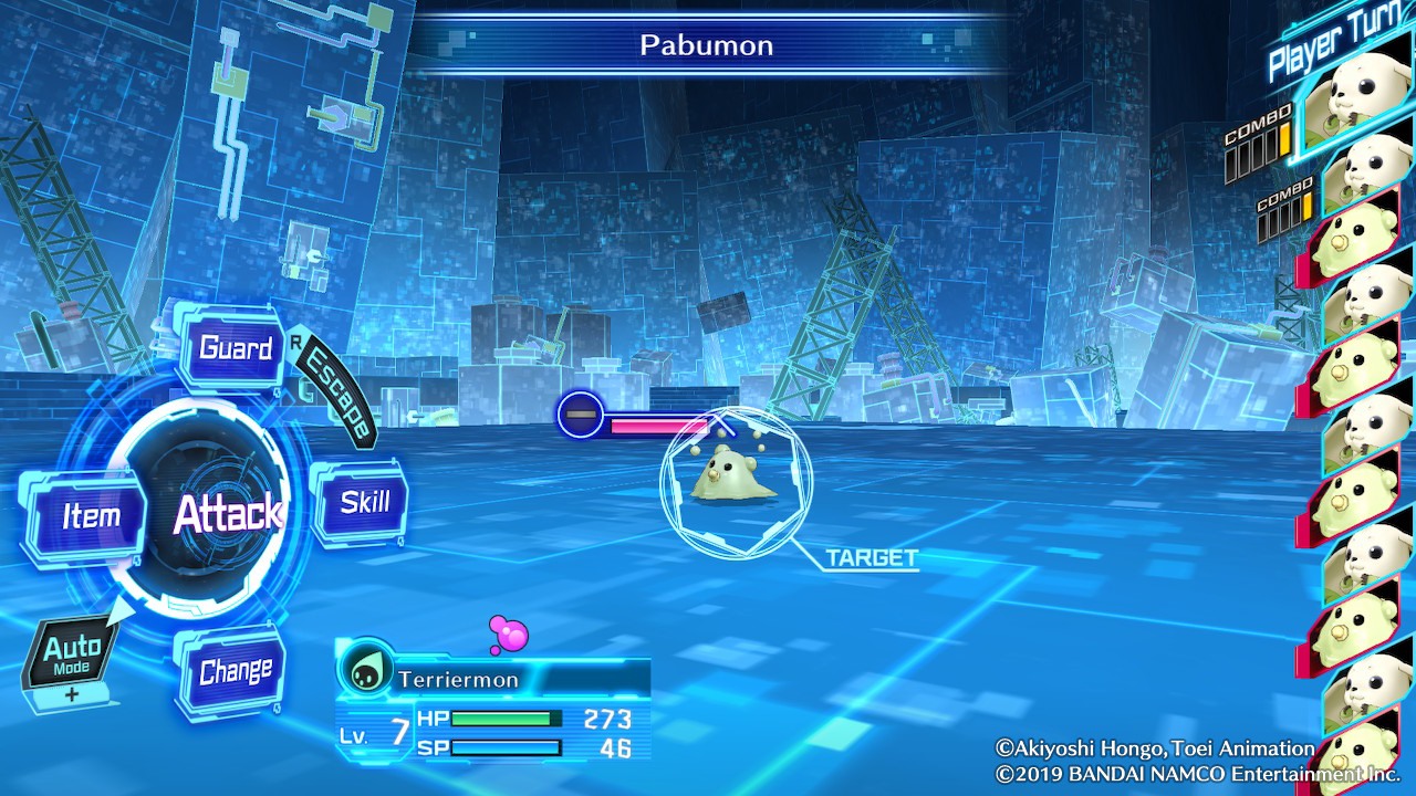 Heureusement, les Digimon vous offrent de nombreuses possibilités en termes d'évolution : ici, vous pourrez progresser ou régresser à loisir (ou tout du moins si certaines conditions sont atteintes) : la planification est donc importante, voire primordiale, et nombreuses seront les captures que vous gâcherez dans des évolutions hasardeuses – on n'apprend à se relever qu'en tombant, après tout. Heureusement aussi, un mode combat automatique est présent afin de ne pas avoir à souffrir durant les trop nombreux aller-retours que vous aurez à faire dans les décors des jeux. C'est d'ailleurs mon principal reproche : Digimon Story: Cyber Sleuth et sa suite manquent de respect pour votre temps, vous obligeant à parcourir et reparcourir les mêmes décors et donjons, là où des points d'accès ou des raccourcis auraient pu être rajoutés. Certes, l'impression de devoir grinder n'est au moins jamais présente, et vos Digimon seront généralement aux bons niveaux grâce aux seuls combats aléatoires que vous rencontrerez sur votre chemin, mais l’on se retrouve – heureusement plutôt rarement – parfois à la frontière de la lassitude.