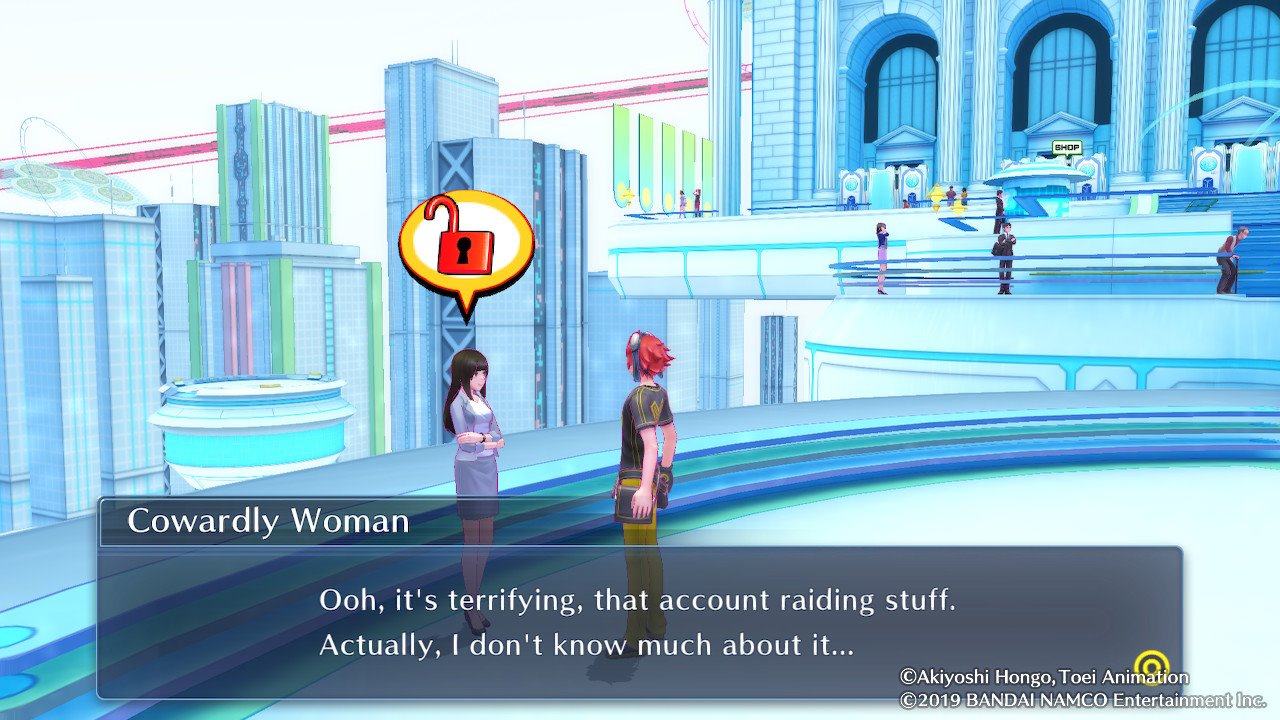 C'est dommage, car Digimon Story : Cyber Sleuth et Hacker's Memory, qui vous font respectivement incarner un détective privé spécialisé dans le cybercrime et un hacker (il m'est difficile d'en dire plus sans l'histoire sans vous divulgacher quoique ce soit), sont plutôt bien rythmés, avec leur alternance de quêtes faisant avancer le fil rouge et des petites enquêtes à mener, assez courtes et que l'on accepte toujours avec plaisir. Et si l'histoire principale a un peu de mal à démarrer, elle atteint vite son rythme de croisière pour proposer quelque chose d'intéressant, à tel point qu'il devient difficile, au bout d'un moment, de décrocher de sa console. Par contre, désolé, mais les non-anglophones devront passer leur chemin : les deux titres ne sont inexplicablement localisés qu'en anglais et en allemand, et la place que prend le texte dans ceux-ci vous fera rapidement abandonner.