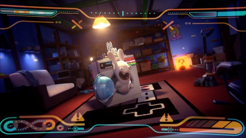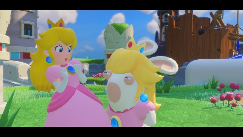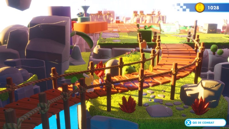 En marge de ces joutes endiablées, de nombreuses phases d’exploration sont présentes. Elles offrent des balades à travers des décors aussi colorés que détaillés, le tout agrémenté d’une bande-son très réussie qui puise dans les musiques bien connues des fans de Nintendo. À travers ces pauses très agréables bien qu’un peu linéaires, vous aurez la possibilité de découvrir de nombreux éléments collectibles tels que des musiques, des illusrations et des modèles 3D. Près de 140 bonus sont à chercher dans ces paysages sublimes qui montrent encore une fois l’importance qu’a donnée Davide Soliani, le créateur du jeu, à ce projet. D’innombrables et hilarants détails sont cachés à travers ce Royaume Champignon en déroute : en ouvrant l’oeil, il ne sera pas rare d’apercevoir les Lapins Crétins occupés à manigancer une idiotie quelconque. C’est un autre point fort du jeu : l’humour omniprésent des Lapins Crétins apporte une telle fraîcheur qu’on en redemande encore et encore ! Rien que Lapin Peach et sa manie de prendre des selfies aux pires (ou aux meilleurs ?) moments est irrésistible !