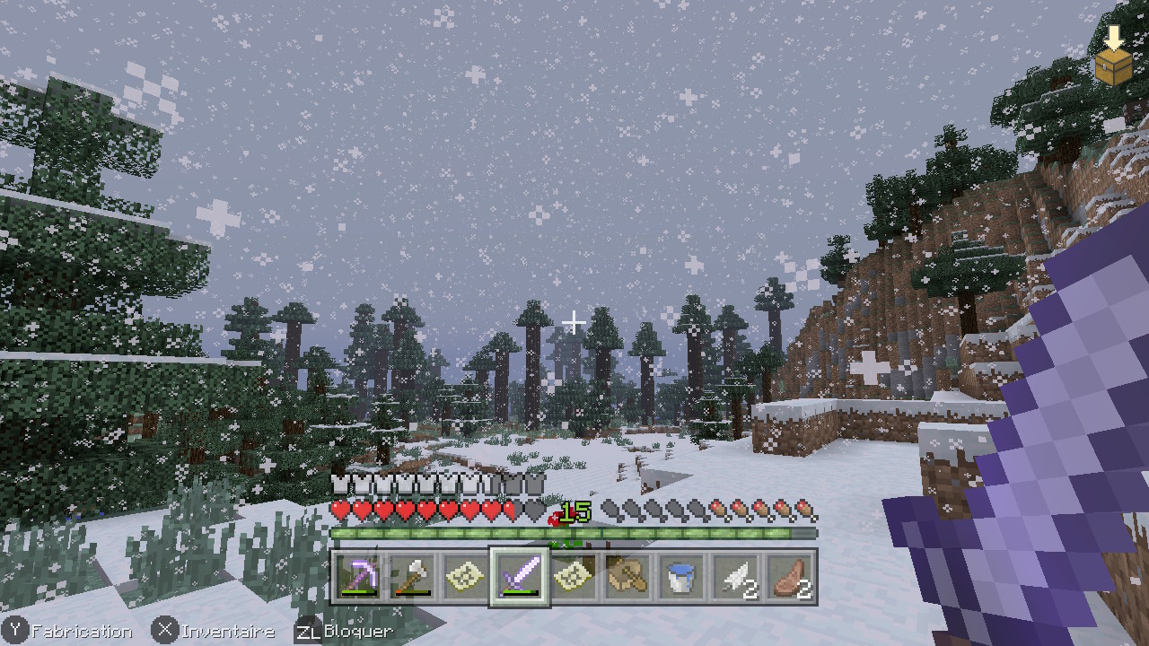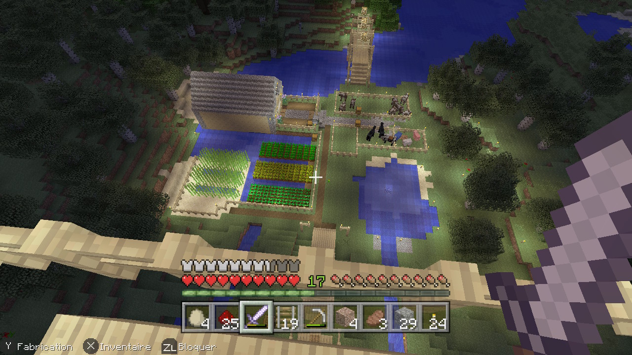 Parce que tout n’est pas tout rose, il faut également parler des quelques problèmes techniques que peut rencontrer Minecraft: Nintendo Switch Edition. Évidemment, le test du jeu est écrit peu après sa sortie, des correctifs ne tarderont sans doute pas à être apportés, et nous ne manquerons pas de vous en parler. Il n’est pas rare du tout dans ce jeu de rencontrer de grosses baisses de framerate. Tournant généralement à 60 images par secondes, il arrive parfois que le jeu passe sous la barre des 30 images par secondes lorsqu’il pleut. Il suffit de rentrer dans une maison ou une grotte pour ne plus être affectés par le problème, mais dès lors que la pluie est devant vos yeux, ça rame. Le pire soucis que nous avons rencontré actuellement est le crash total du jeu. En pleine forêt tropicale (et donc très très dense), par temps de pluie, le jeu n’a pas supporté. Retour immédiat au menu principal de la console.
