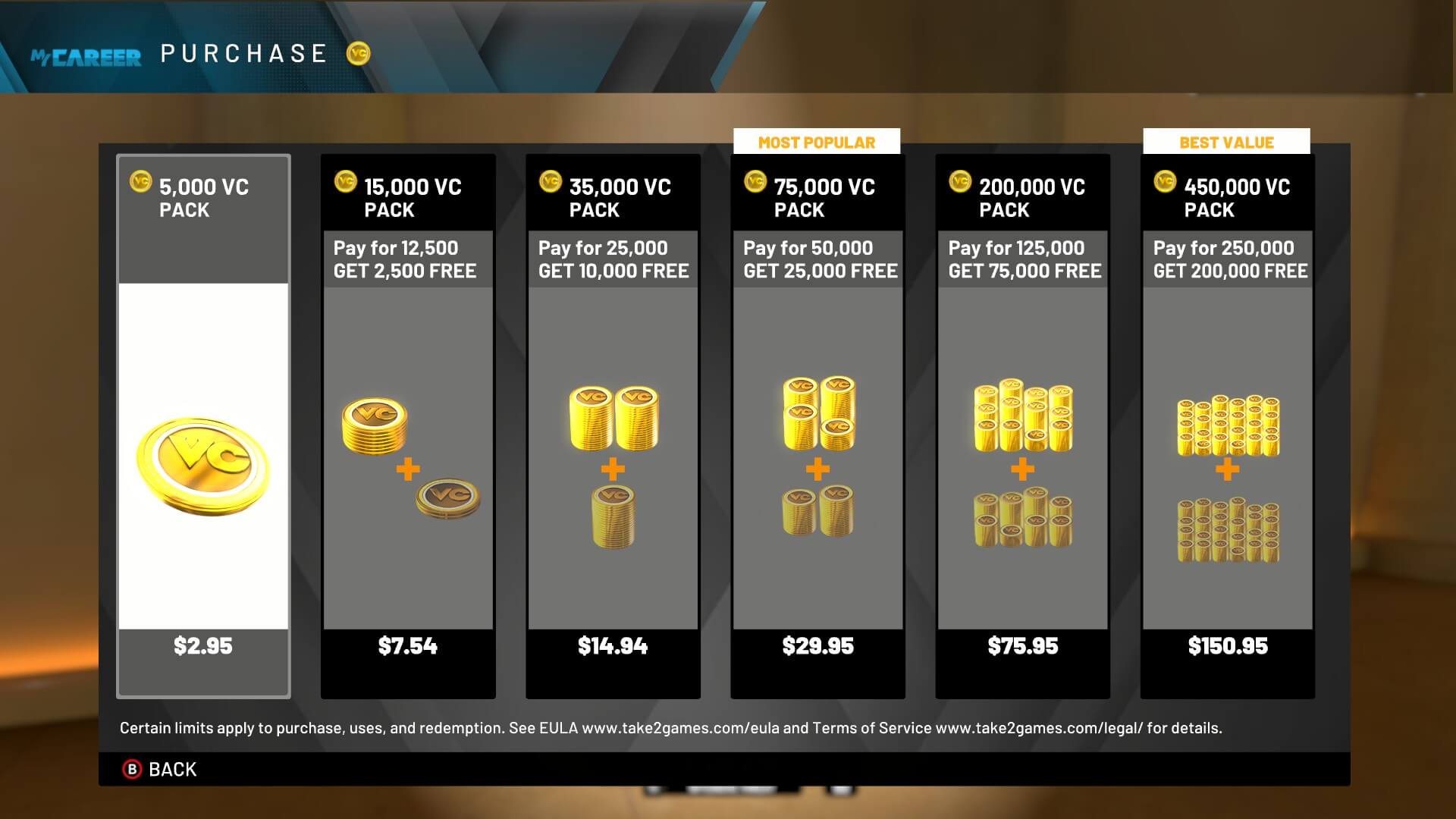 En revanche, c’est une autre paire de manche pour MyLeague, la réponse au FUT de chez EA Sports : si vous trouviez ce dernier trop demandeur niveau microtransactions, ne lancez même pas son équivalent 2K, tant celui-ci est un véritable casino à ciel ouvert, dont chaque aspect est étudié pour susciter l’addiction et l’envie d’injecter de l’argent dans le jeu. Cet aspect « cash-grab » est présent dans l’entièreté du jeu, où les VC (Virtual Coins, la monnaie virtuelle ayant cours dans celui-ci) vous permettront tout autant d’upgrader votre joueur que d’acheter des améliorations cosmétiques, mais jamais de manière aussi éhontée que dans MyLeague.