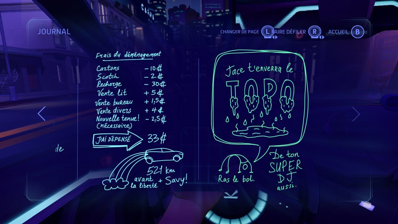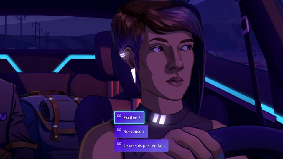 — Pas vraiment. C'est ce que l'on appelle un visual novel. Une sorte de livre interactif, si vous voulez. Au début, je pensais qu'on aurait à conduire le taxi du jeu, mais finalement pas. On se contente de choisir nos clients et les répliques qu'on va échanger. Ce qui n'est pas plus mal, au final.