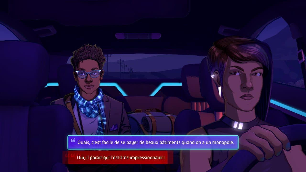 Neo Cab est un visual novel, avec tous les défauts que ça comporte : peu d'interactivité, une certaine répétitivité… Mais la finesse de son écriture et l'intelligence de son propos, qui a l'habileté de ne jamais vraiment prendre parti, en font un indispensable du genre pour tous les amateurs et un titre que vous n'oublierez pas de si tôt tant il risque de vous bouleverser. Pour tous les autres, malheureusement, à presque 20€ les trois heures de jeu, je vous conseille d'attendre les soldes pour tenter l'expérience.