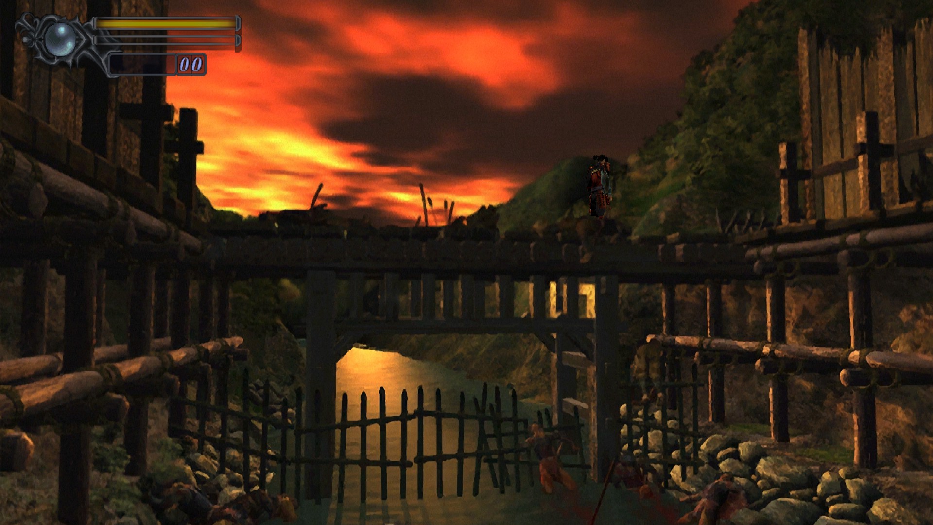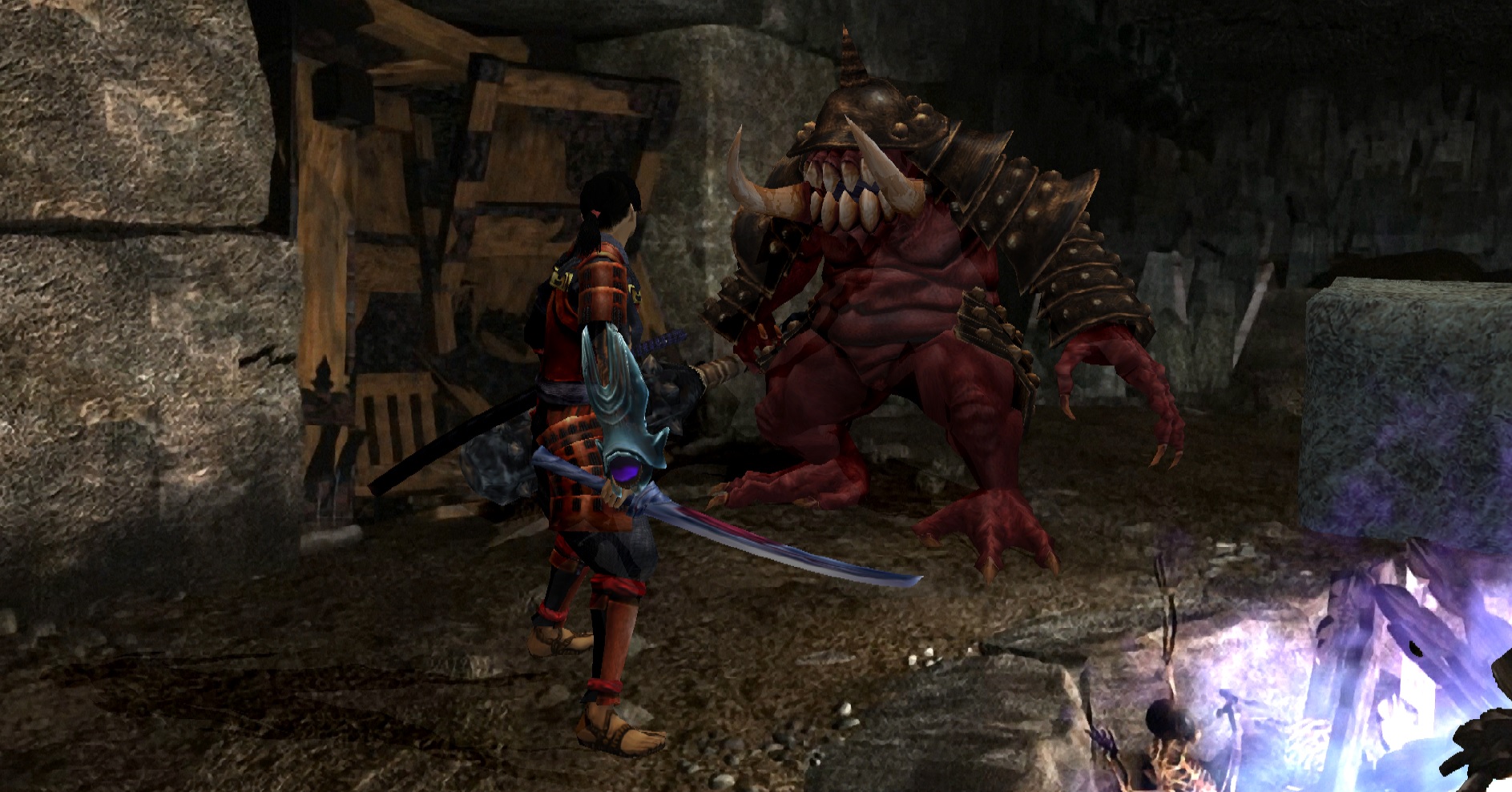 Malgré tous les défauts cités, Onimusha arrive encore à nous captiver grâce à un gameplay tranchant et un excellent rythme. Le très bon système de combat de Onimusha est basé sur deux composantes : les coups violents et nerveux de notre samouraï ainsi que les différentes lames mises à disposition du joueur. Nous avons donc des coups rapides mais plus faibles, des coups lents mais beaucoup plus puissants et une touche pour parer / contrer les attaques ennemies, le dernier bouton permettant de récupérer des orbes, lâchées par les adversaires une fois morts, permettant d’accéder à un système de leveling pour le katana de Samanosuke.