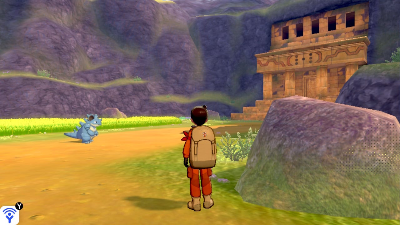 Les autres quêtes, bien qu’intéressantes dans la forme, se révèlent être moins stimulantes sur le fond puisqu’elles consistent globalement à de simples missions pour récupérer les golems légendaires, parmi lesquels on retrouve deux nouveaux Pokémon ou encore les trois mousquetaires. Afin d’agrémenter quelque peu la recherche de ces créatures, une recherche d’empreintes à travers les Terres Enneigées de la couronne correspondant au trio de légendaires de la cinquième génération est disponible. Précisons que si le jeu ne propose pas moins de 150 empreintes à retrouver sur l’ensemble des Terres Sauvages enneigées, la poursuite des traces laissées par Cobaltium, Viridium et Terrakium s’avère bien moins agaçante que la quête des Taupiqueur d’Isolarmure. Concernant les Pokémon golems de la troisième génération, de petites énigmes très rapides seront proposées afin de débloquer l’accès aux temples dans lesquels ces derniers attendent leur valeureux dresseur. Une fois encore, les quêtes menant à la capture des « Regi » ne s’avèrent pas véritablement excitantes et seule la capture en elle-même s’avère intéressante.