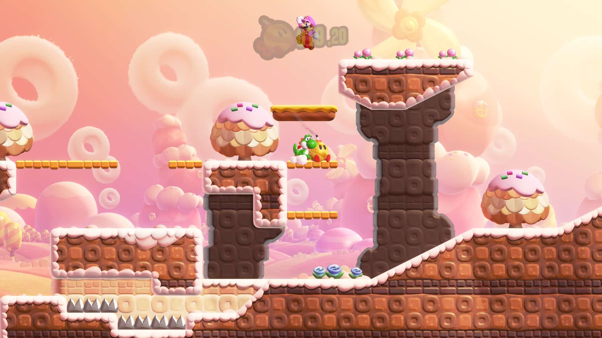 C’est ce même jeu qui est choisi par l’entreprise japonaise pour coïncider au mieux avec la sortie de Super Mario Galaxy Movie, dans une édition consacrée à sa dernière console en date et avec un nom complet bien trop long : Super Mario Bros. Wonder – Nintendo Switch 2 Edition + Rendez-vous au Parc Bellabel. Au terme d’une communication bien étrange entre l’accent mis sur le contenu multi tout en pointant l’existence de contenu solo supplémentaire dans l’expérience, qu’en est-il vraiment pour le titre venant clore l’année fiscale 2025-2026 de Nintendo ?