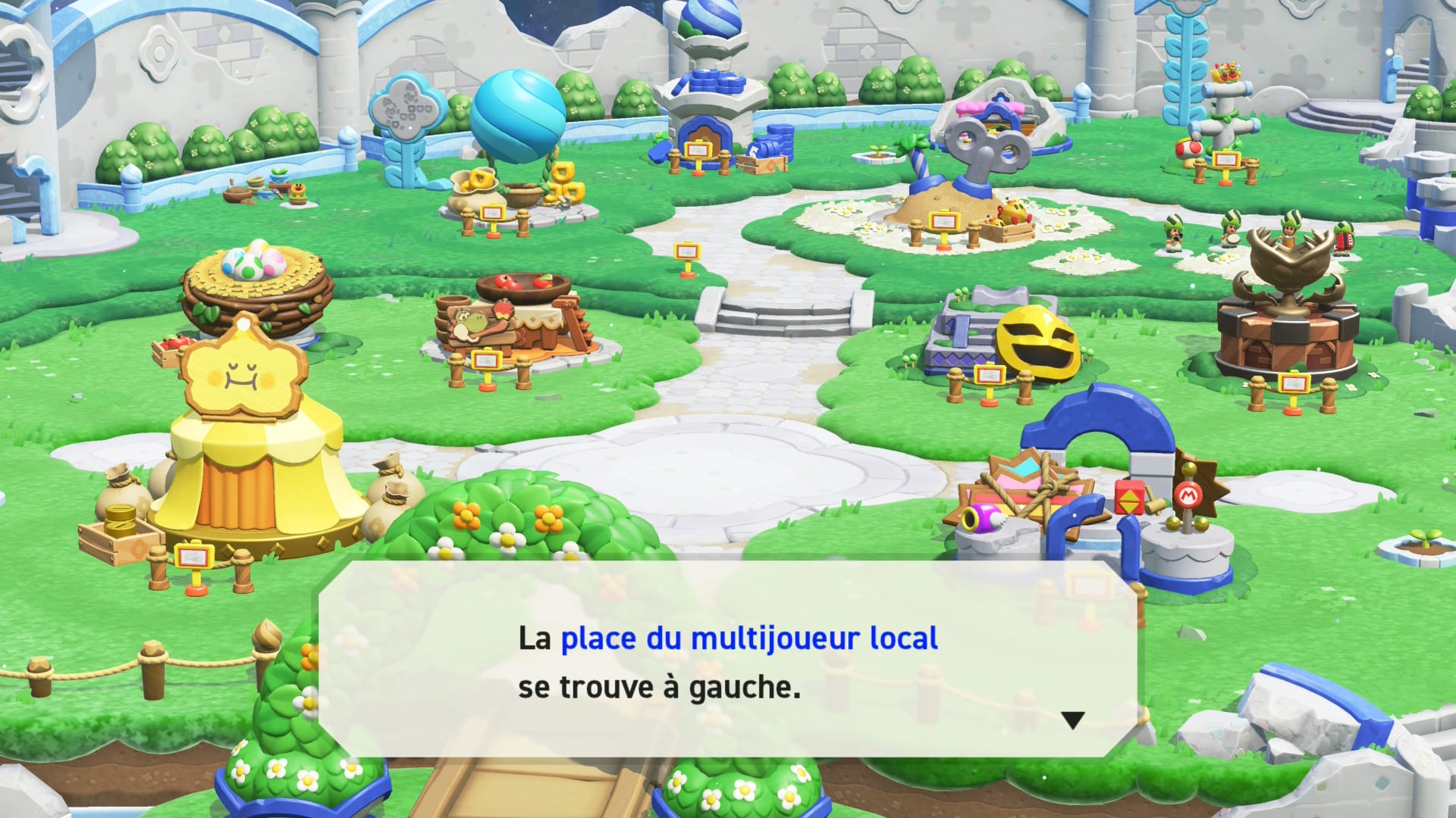 On se rend alors compte que lacoordination des deux joueurs est un véritable défi et apporte son lot de disputes et de rires à la fois. En plus de ce mode particulièrement intéressant, le parc Bellabel propose également des courses de relais dans lesquelles les joueurs doivent se passer une bombe, des défis à la Mario Maker dans lesquels un joueur construit le chemin à l’autre en plaçant des blocs ou encore des jeux de rythme à réaliser pour avancer. De la même manière que pour les jeux en versus, la proposition est une nouvelle fois assez riche en stages afin de proposer une belle rejouabilité.