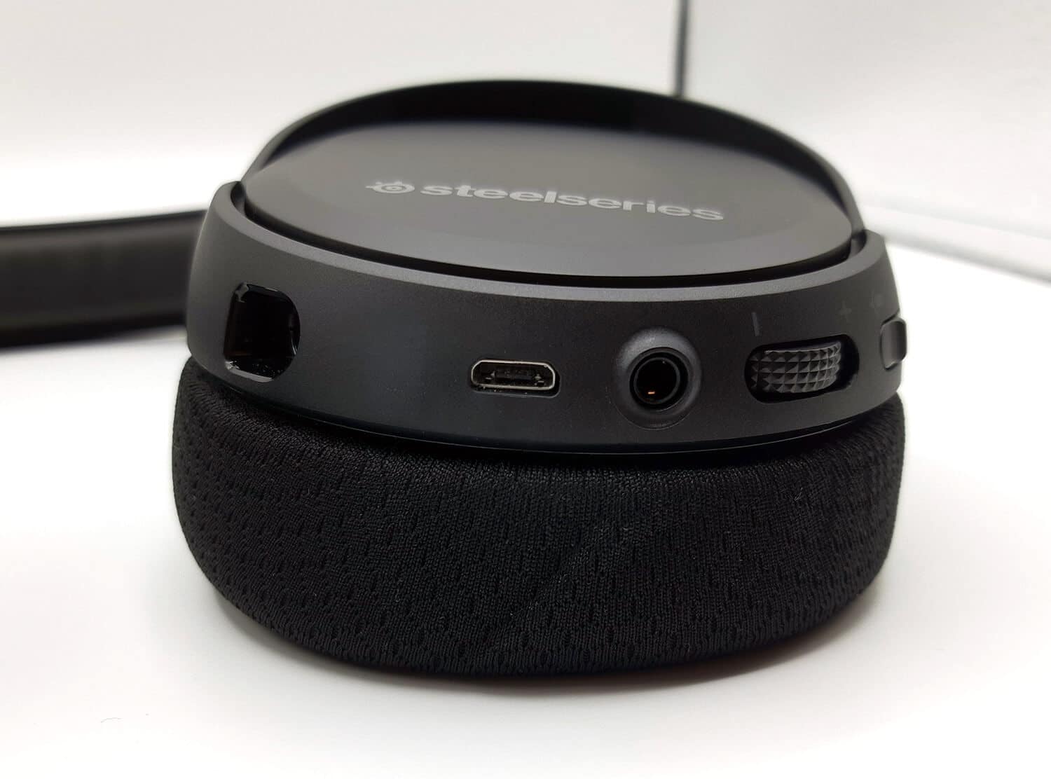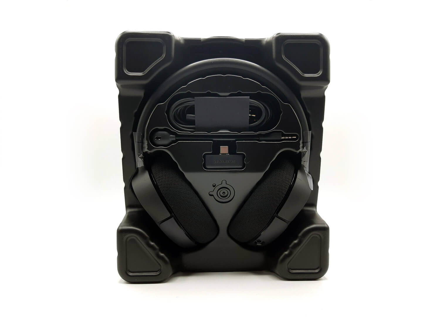 Le design général du casque est réussi : oreillettes plates, arceau qui ne donne pas trop l’impression d’avoir une tête très large et sobriété générale. Je n’ai pas grand chose à dire là dessus tant il est, à mon goût, réussi. C’est surtout au niveau des différents boutons disposés sur le bas des oreillettes que je tique un peu, je me revois il y a 10 ans avec les casques gaming de l’époque qui proposaient un nombre incalculables de ports et de réglages en tous genres. Port micro-USB, port jack, port casque, molette, bouton d’activation du micro et bouton d’allumage du casque, ça fait un peu … trop, même si tout cela semble nécessaire. L’autre composante qui me gêne un peu, c’est que nous avons affaire ici à un casque pour la mobilité, pour jouer avec la Nintendo Switch qui peut se transporter partout. Sachez-le, SteelSeries n’a pensé ni à permettre de plier le casque, ni à intégrer une pochette de transport dans la boîte : vous êtes condamnés à acheter ce qu’il faut, ou de tenir le casque à la main le temps que vous ne l’utilisez pas, dommage.