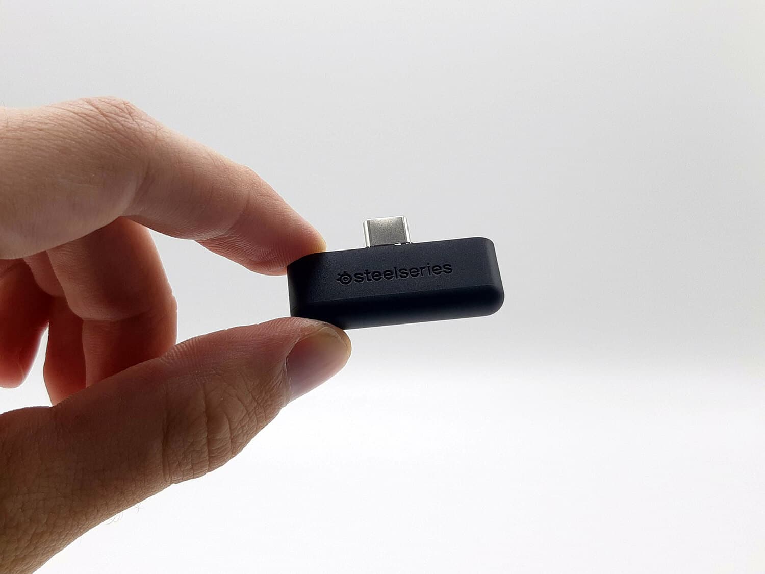 Le fonctionnement est très simple et bien pensé. Comme nous le disions au-dessus, la Nintendo Switch est malgré tout capable d’accepter l’utilisation d’un casque sans-fil via un dongle USB. SteelSeries s’y est tenu et propose donc un casque sans-fil compatible pouvant être utilisé en mode portable comme en mode TV sur la console. Pour cela, un dongle USB Type-C est disposé dans le packaging du casque ; il suffit de brancher celui-ci sous votre Switch (classique ou Lite) en mode portable, puis d’allumer le casque et le tour est joué. Pour le mode TV, la marque a eu la très bonne idée d’ajouter un adaptateur USB / USB Type-C. Bien qu’un peu trop long pour être bien rangé, celui-ci vous permettra de profiter du casque en mode TV, ou même sur un ordinateur si vous le souhaitez. Pour tout vous dire, je l’utilise également pour passer des appels via mon PC ou mon Mac ; c’est aussi le casque que j’utilise en stream (je n’utilise pas ce micro néanmoins).